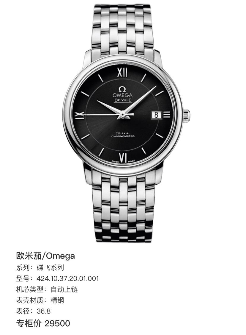 全新欧米茄/Omega 碟飞系列 424.10.37.20.01.001 自动上链 精钢 36.8 专柜价 29500欧米茄42410372001001