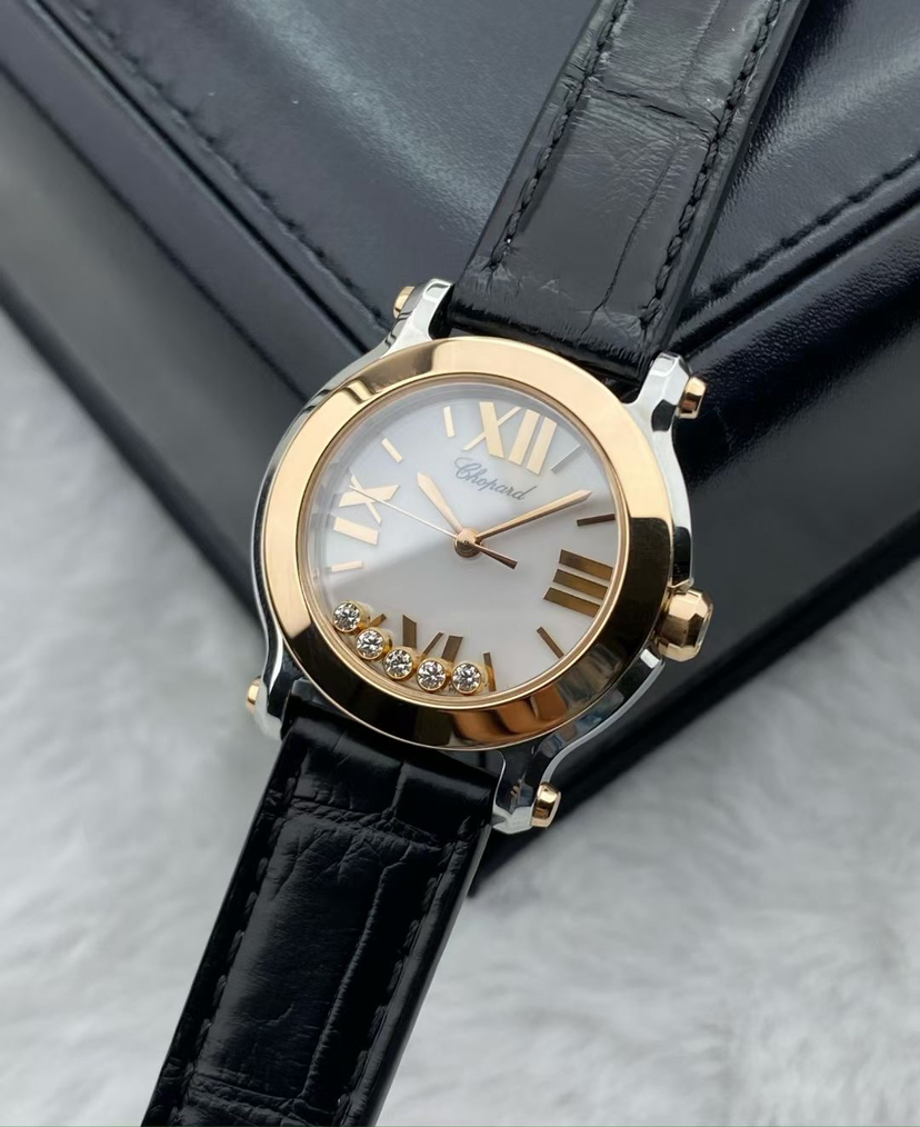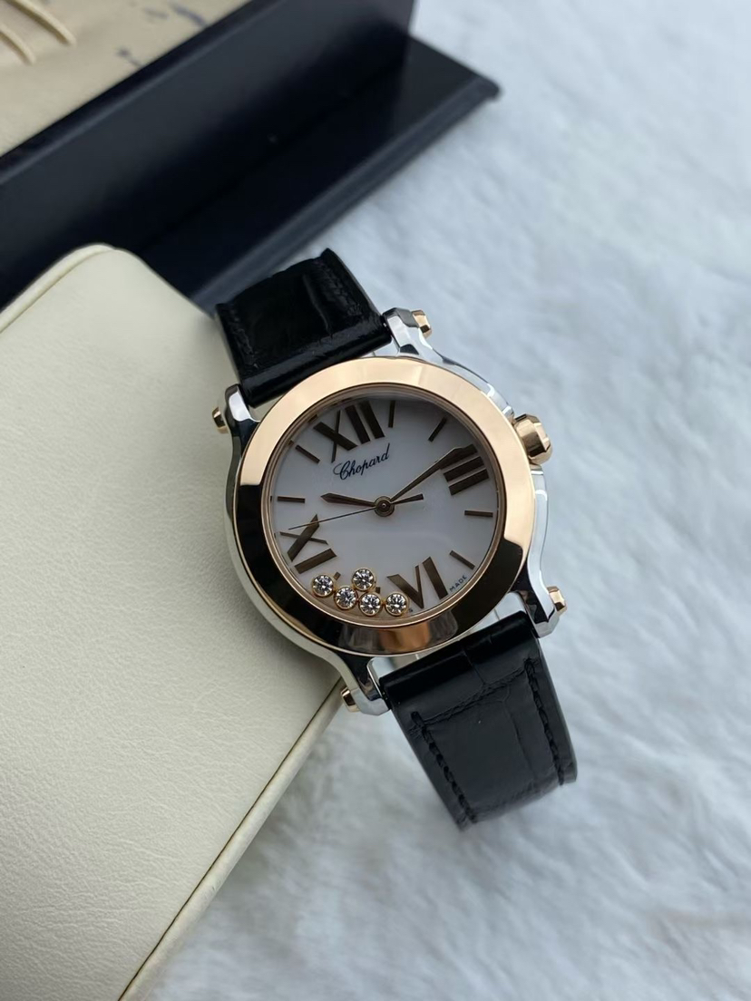 萧邦HAPPY DIAMONDS系列278509-6002女士腕表,石英机芯,表径30mm,18k玫瑰间金材质,热门款,快乐五钻,极品成色,公价47100