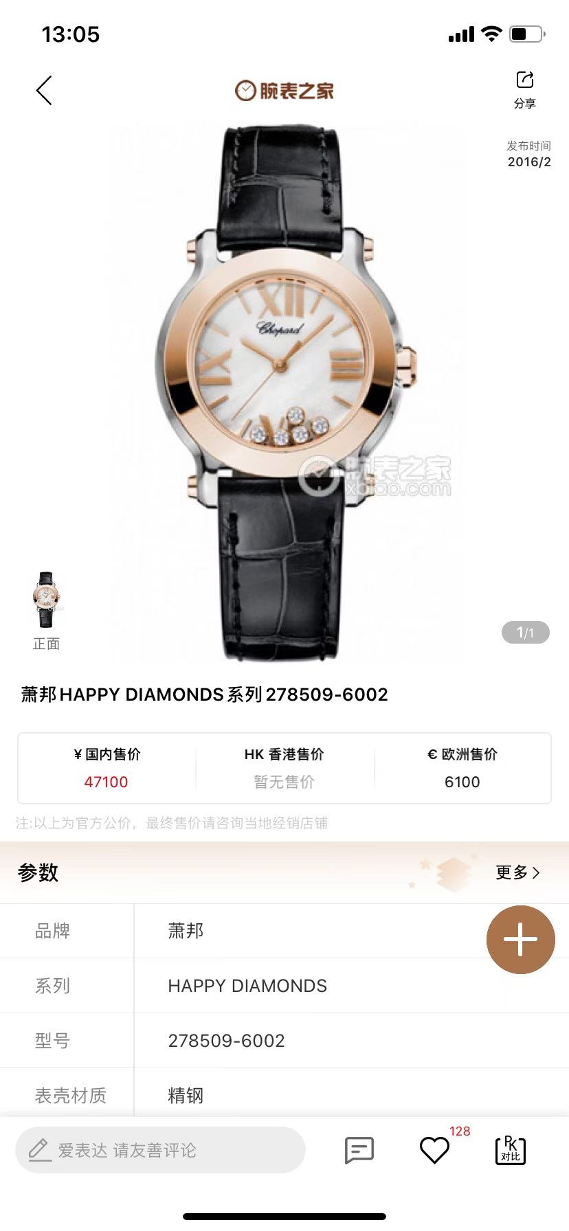 萧邦Happy Diamonds278509-6002石英女性