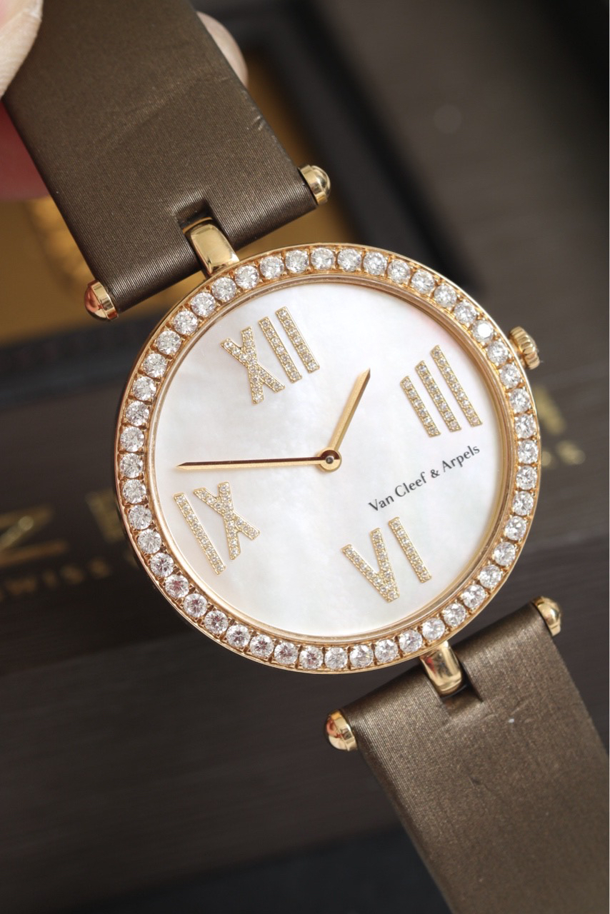 梵克雅宝高级珠宝腕表贝母盘原钻石英女性