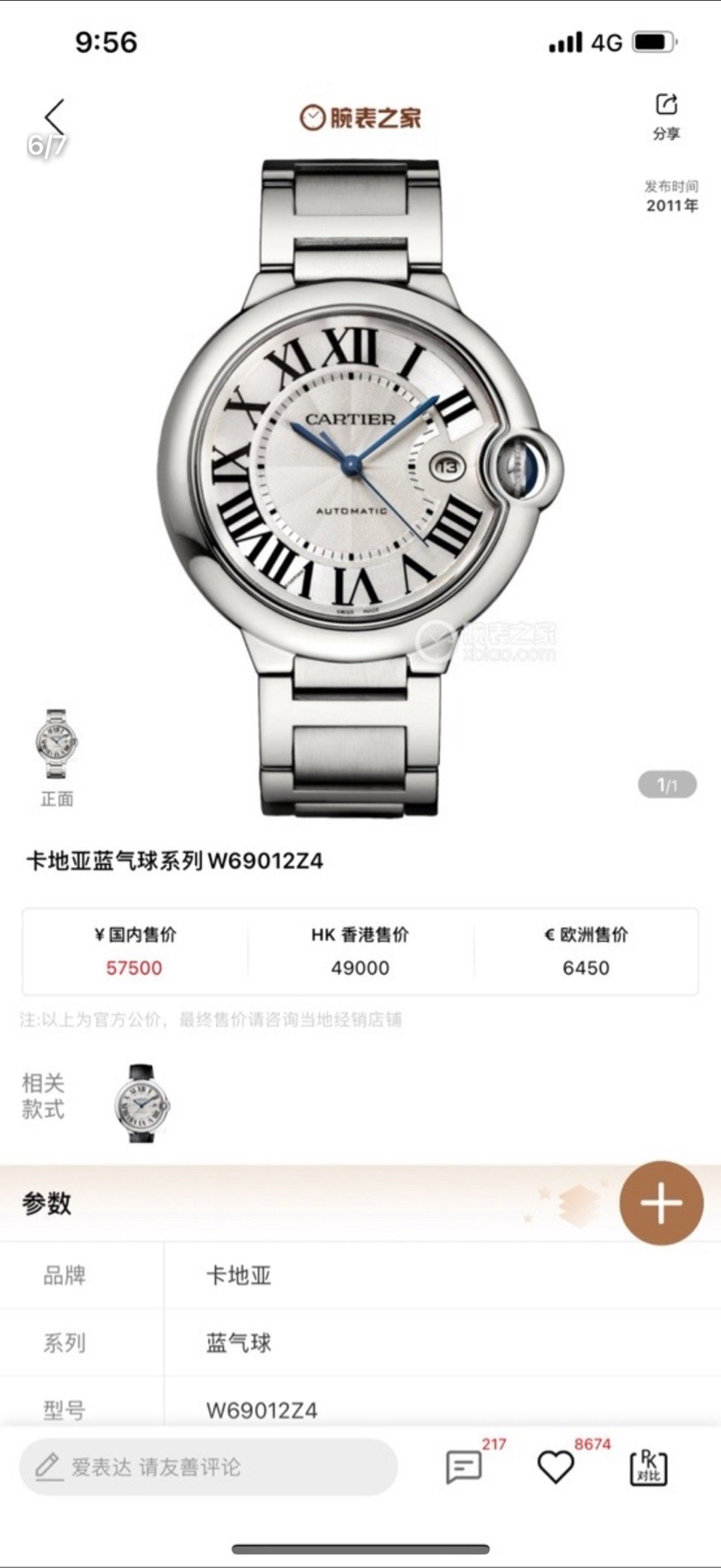 卡地亚/Cartier 蓝气球 W69012Z4 男士自动机械 精钢材质 表径42.1毫米 银白色字面,2018年购入 新款机芯 链子够长 附件如图 专柜价57500 现好价分享