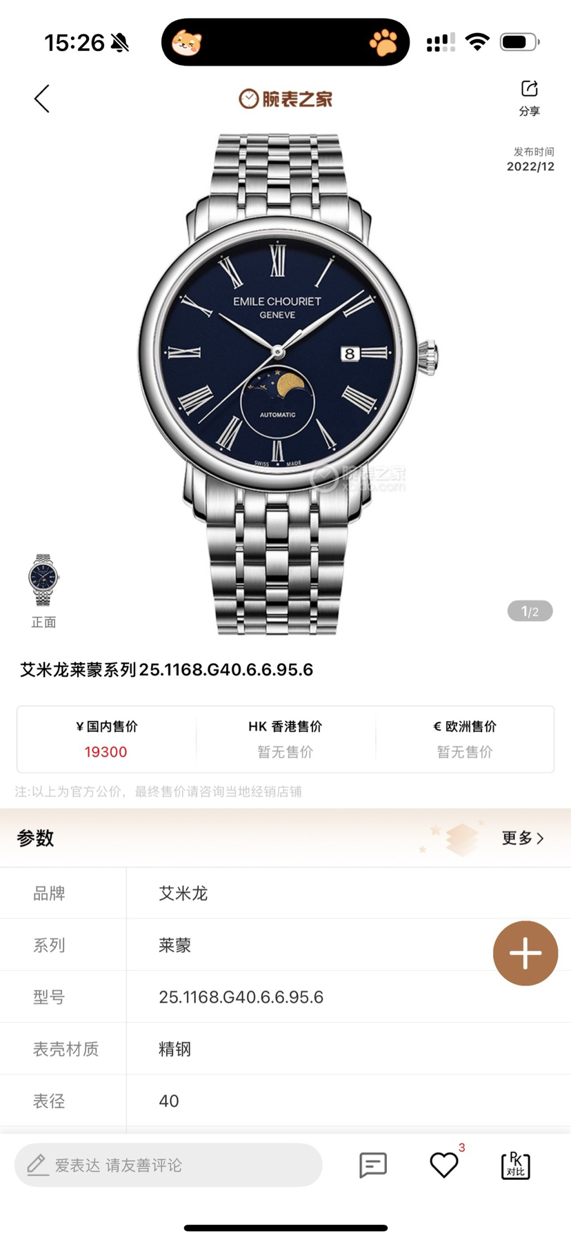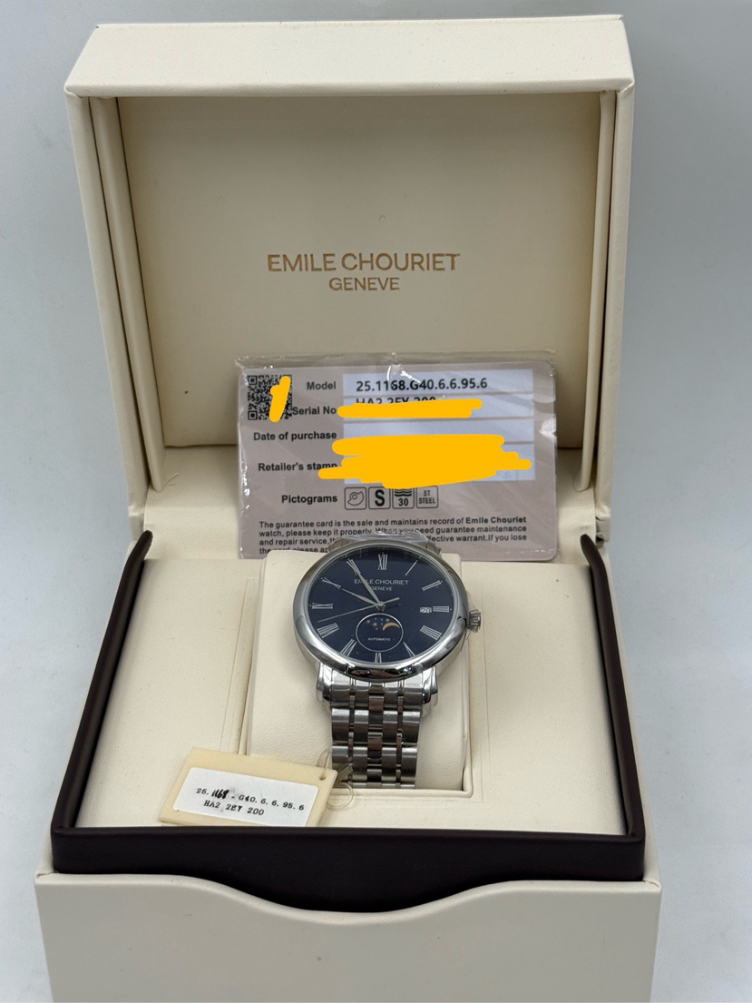 艾米龙/Emile Chouriet 莱蒙 25.1168.G40.6.6.95.6 自动机械 精钢 40毫米 专柜价19300~未使用全套