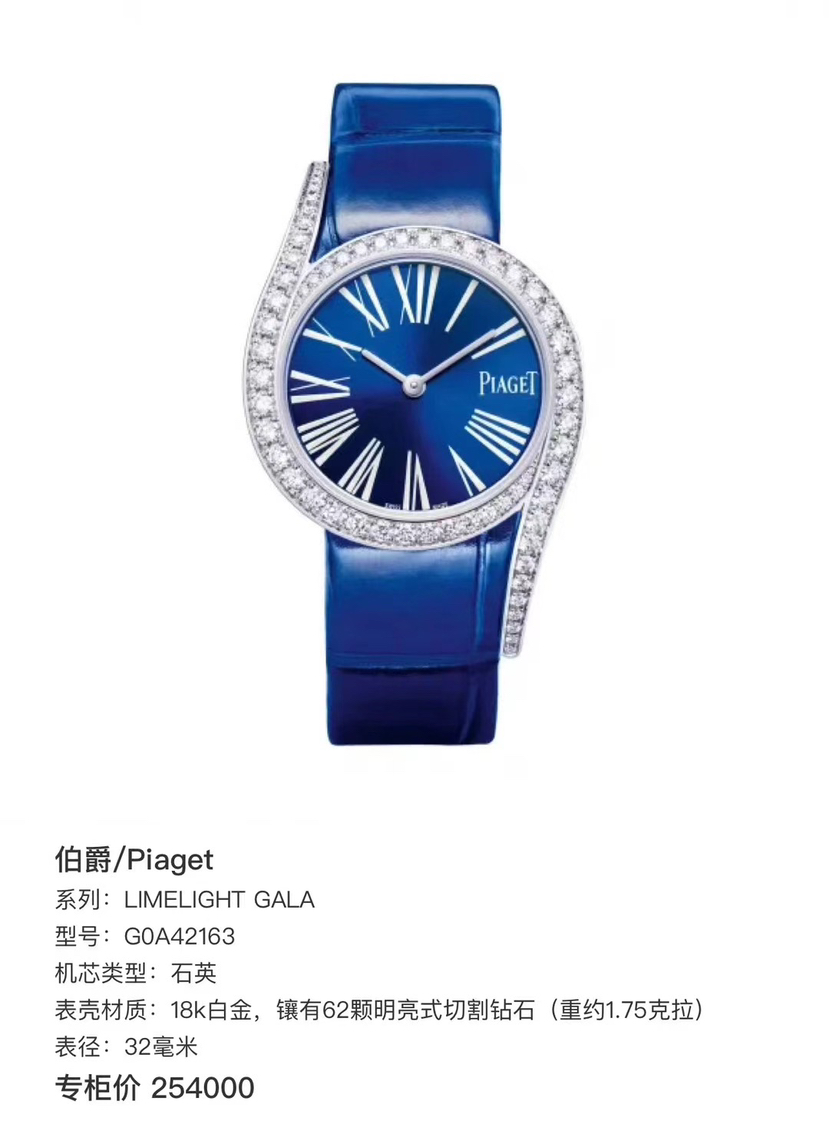 伯爵G0A42163 石英机芯 女性梦寐以求 伯爵69钻 不对称造型 贴合手腕 18k白金材质 外圈镶有62颗顶级钻石(重约1.75克拉 32毫米表经 专柜价254000 21年未使用闲置品全套 现货好价~