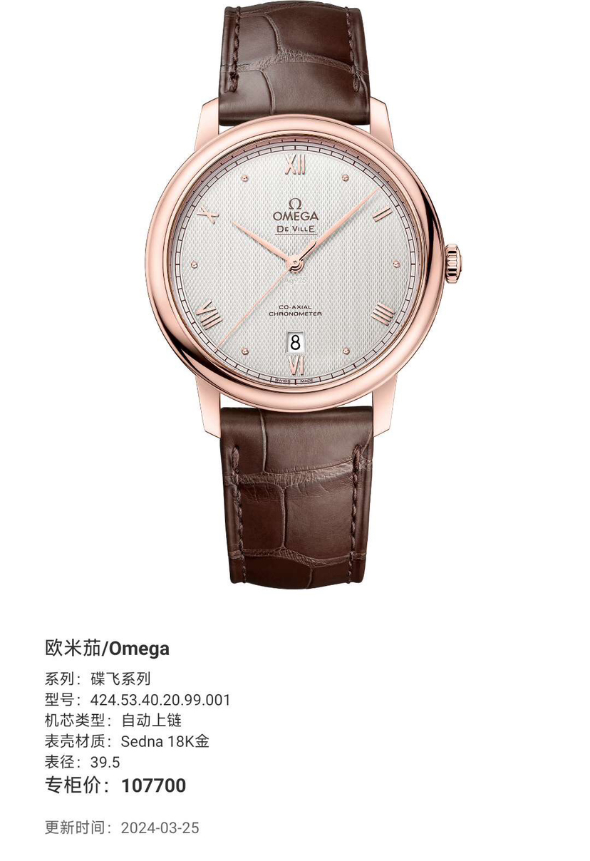 欧米茄/Omega 碟飞系列 424.53.40.20.99.001 自动上链 Sedna 18K金 39.5 专柜价107700~ 未使用全套