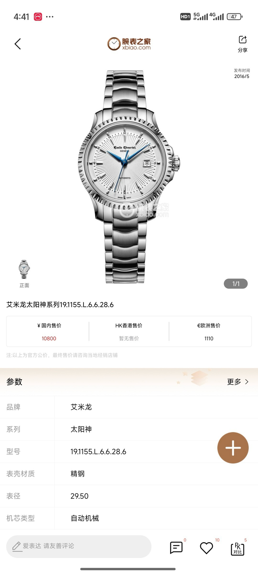 艾米龙太阳神系列19.1155.L.6.6.28.6(191155L66286)手表~