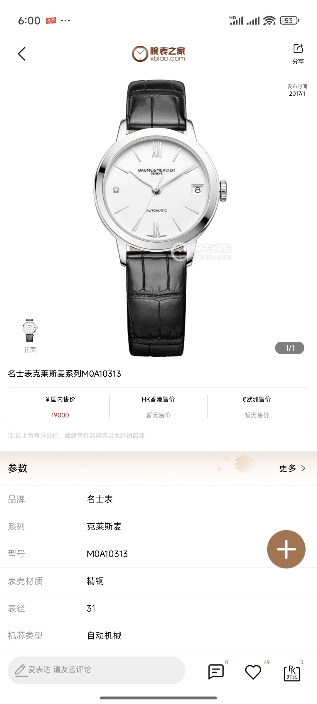 鳄鱼皮表带 公价19000元