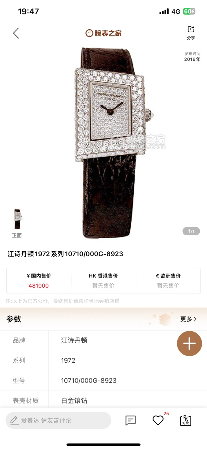 【2000年全套原钻】江诗丹顿/Vacheron Constantin 1972 10710/000G-8923 手动机械 白金镶钻 专柜价481000,无盒!无盒!无盒!~