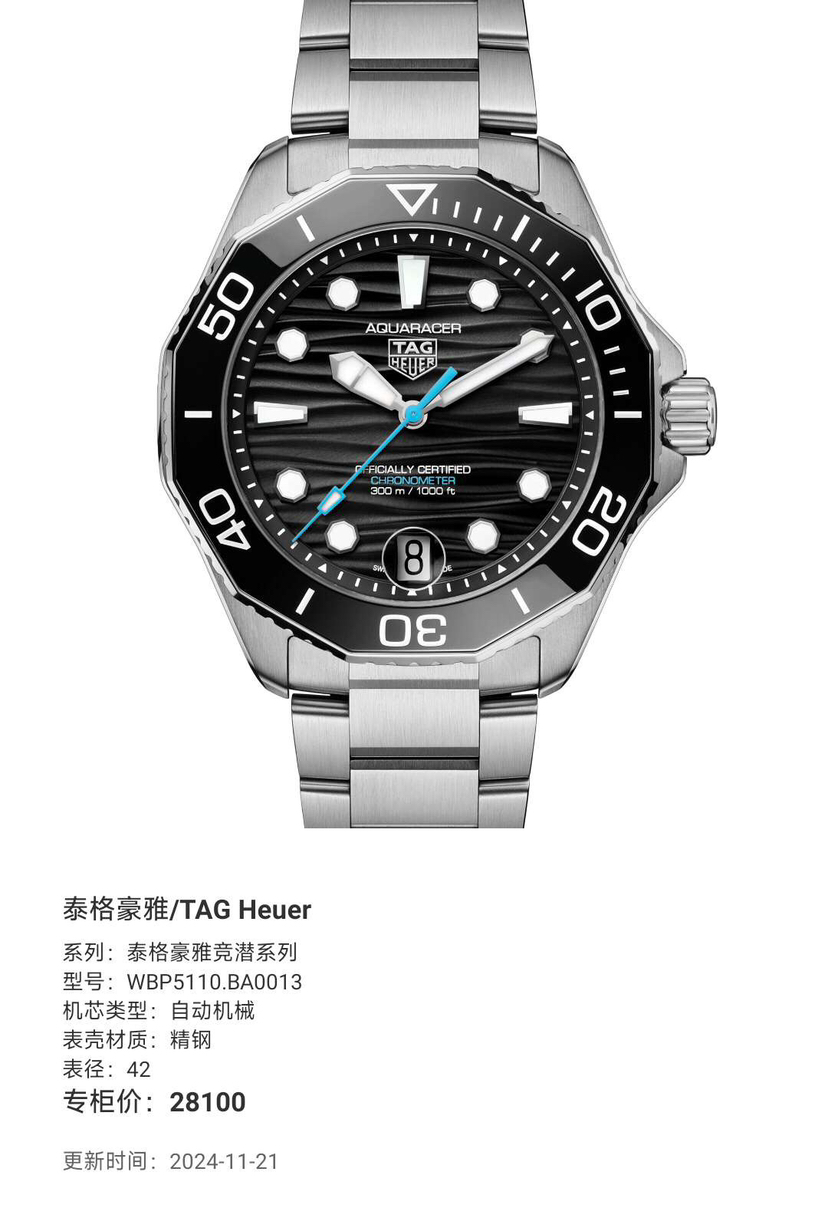 泰格豪雅/TAG Heuer 泰格豪雅竞潜系列 WBP5110.BA0013 自动机械 精钢 42 专柜价28100元 国行全新全膜未使用品