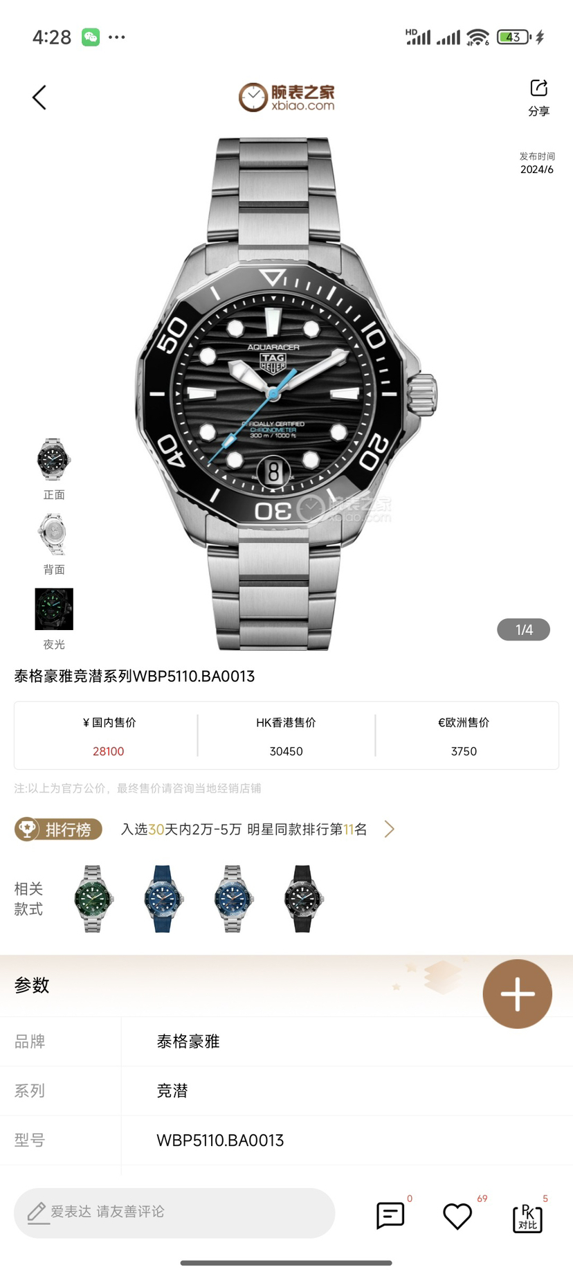 泰格豪雅竞潜系列WBP5110.BA0013(WBP5110BA0013)手表~