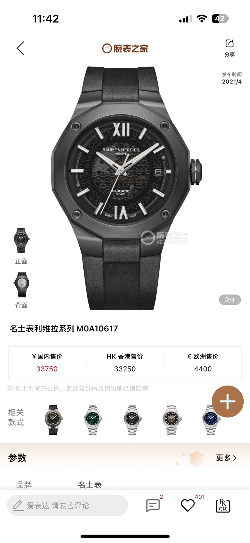 名士表利维拉系列M0A10617专柜价:33750 全套附件如图,2022 年 02 月购入~