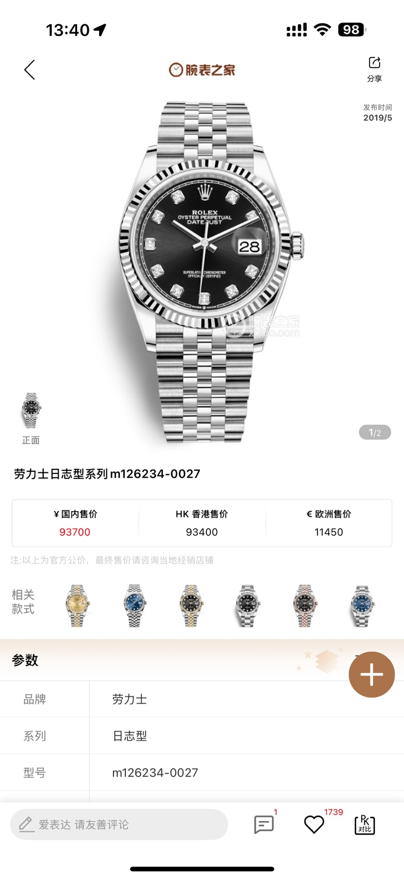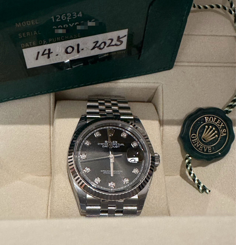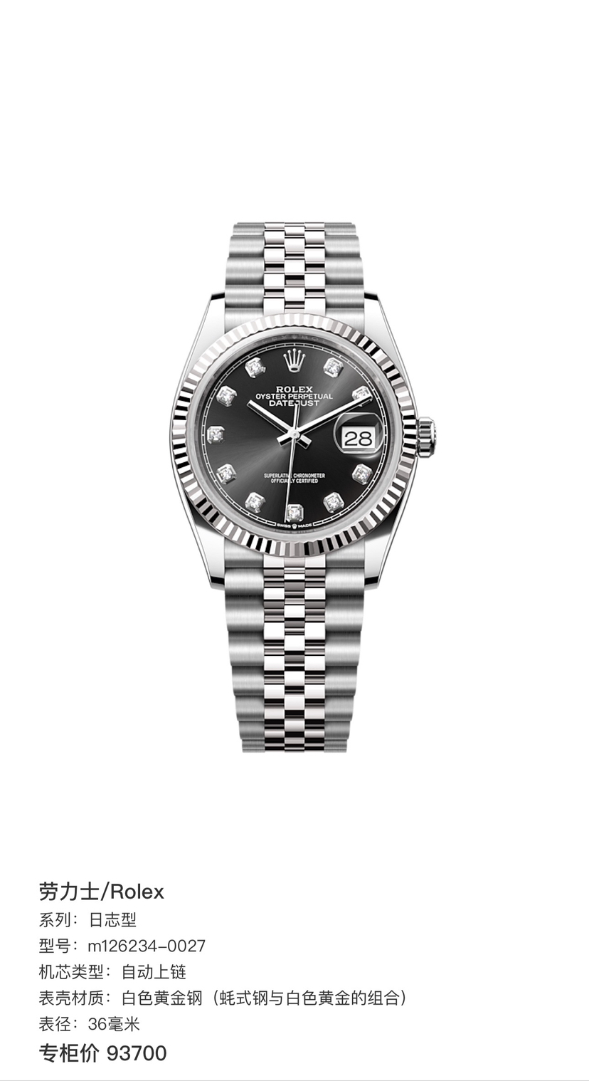 劳力士 日志型 m126234-0027 36毫米 黑钻 25年1月卡全膜 36毫米 专柜价93700~