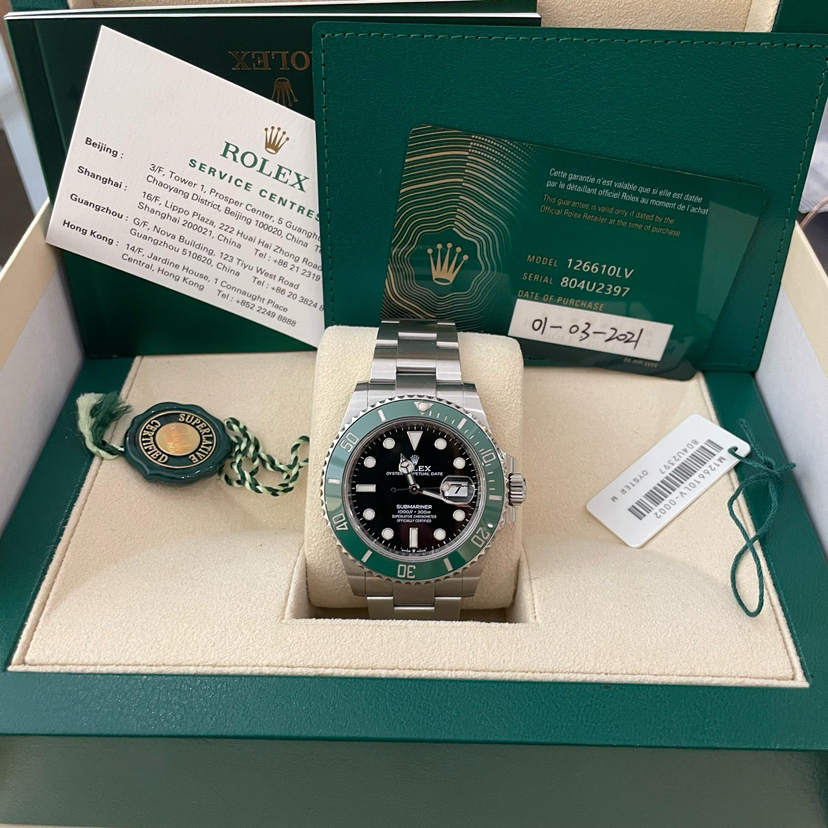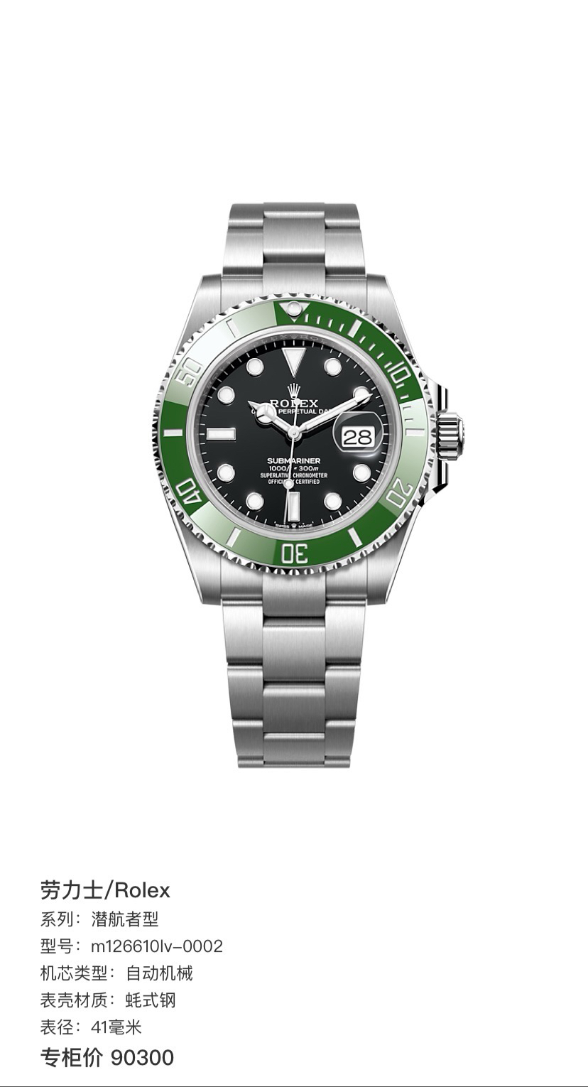 劳力士 126610lv-0002绿水鬼自动机械男41mm表径 专柜价:90300 全套21年3月全套 现货好价~