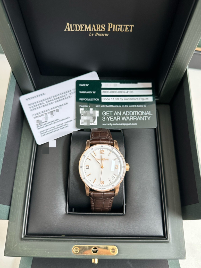 22年国行双卡全套 爱彼code系列15210 41毫米表径 通体18k玫瑰金材质 高颜值白面玫瑰金 背透大金陀 2022年双卡全套 公价241000 现货好价