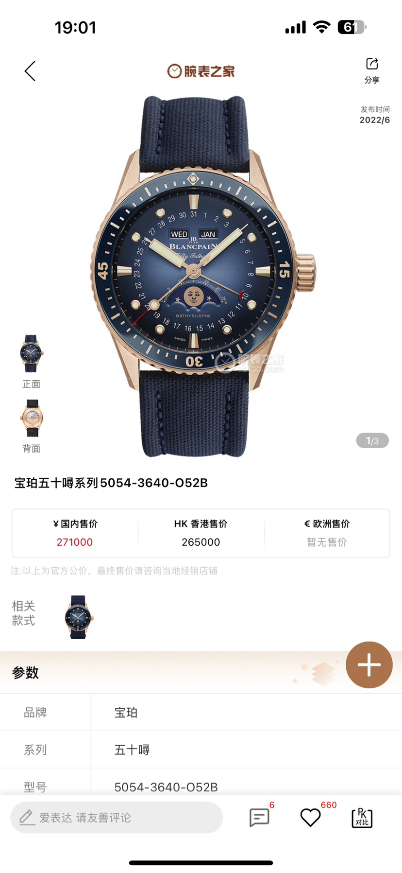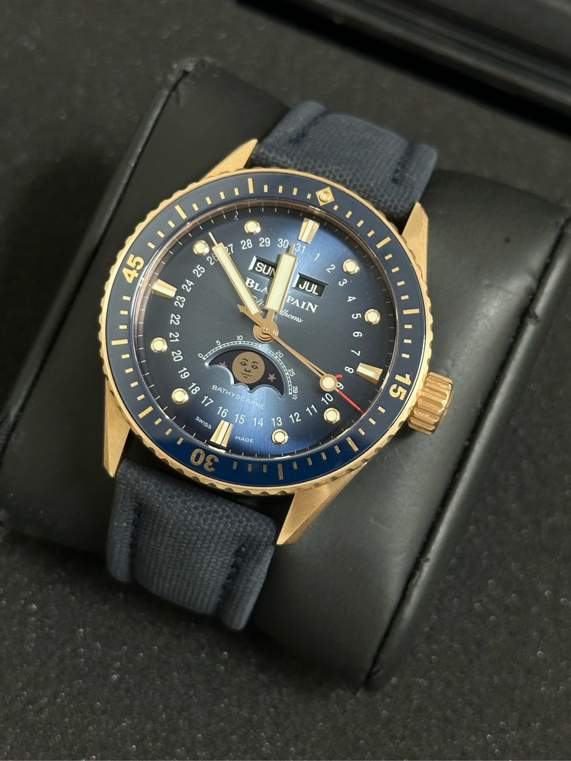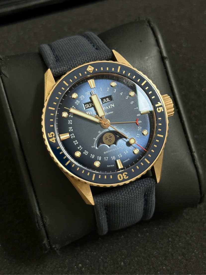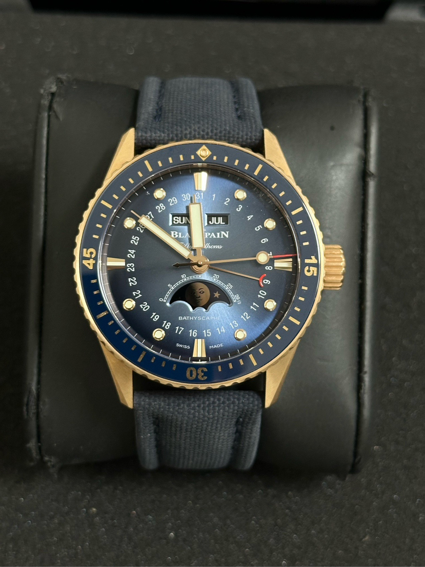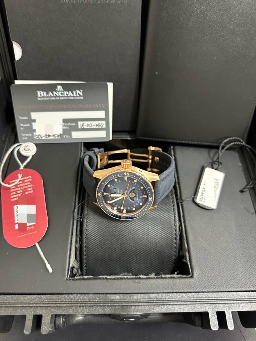 2024年4月全套宝珀五十噚5054-3640-O52B 43表径 自动机械 玫瑰金蓝面极品2024年全套 公价271000现货好价
