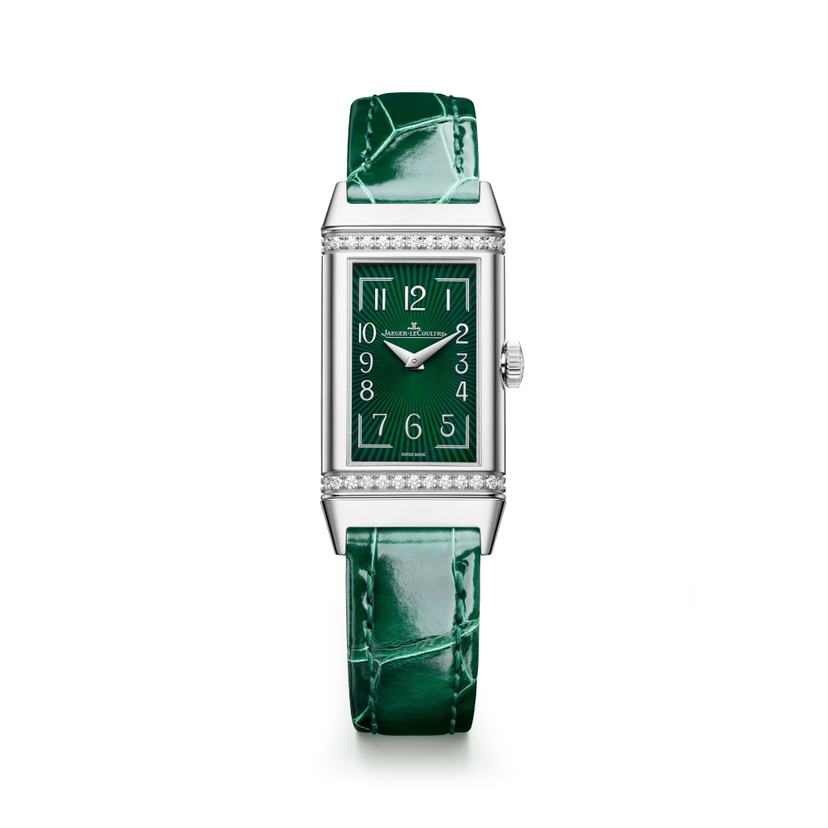 当天卡翡翠绿盘新款 积家/Jaeger LeCoultre 翻转系列 Q328853J 石英机芯 尺寸40.1/20mm 可翻转表头别样精致 原镶嵌26克钻石 最新款绿色表盘 女神首选 公价60000