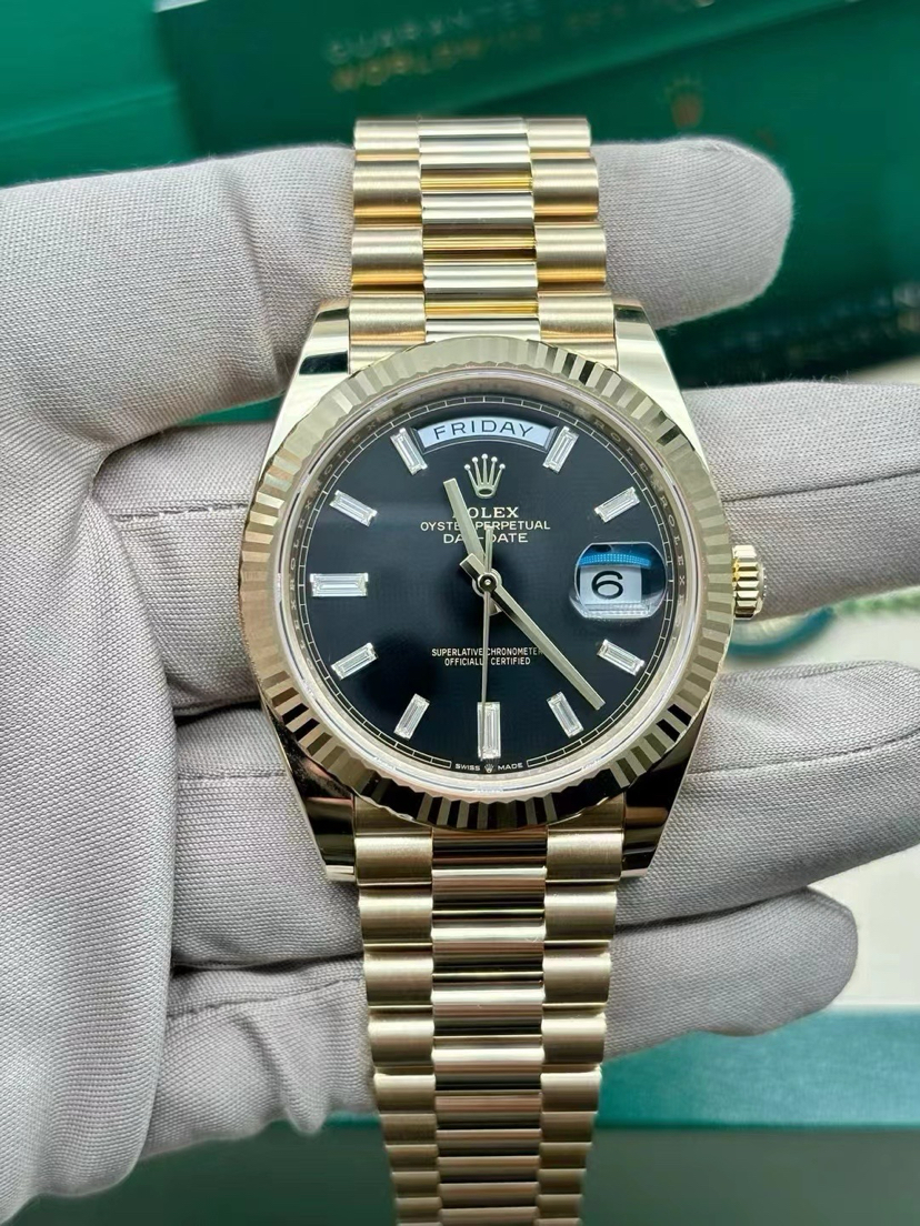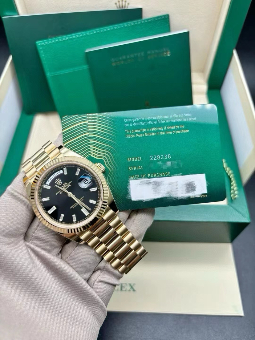 未使用国行当天卡 黑冰糖 劳力士星期日志228238-0004黑冰糖DD,18K黄金40毫米自动机械男表 公价395700