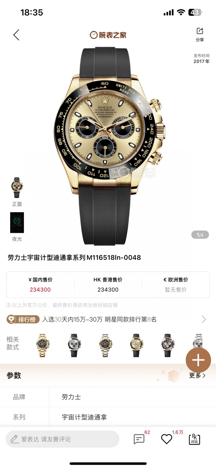 劳力士宇宙计型迪通拿 余文乐 M116518LN-0048自动机械男性