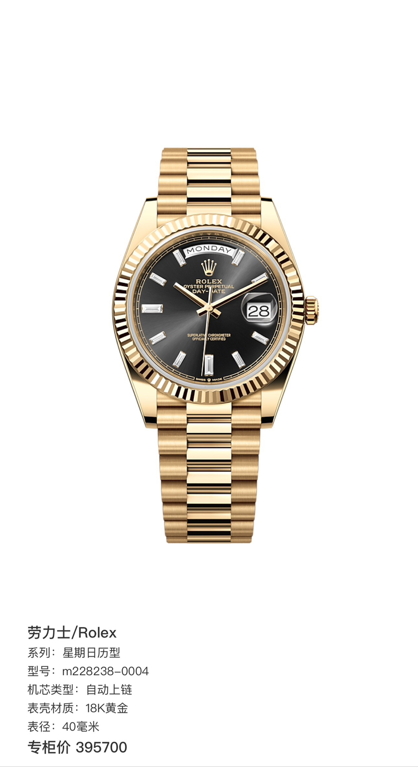 劳力士星期日历型 黑冰糖 M228238-0004自动机械男性