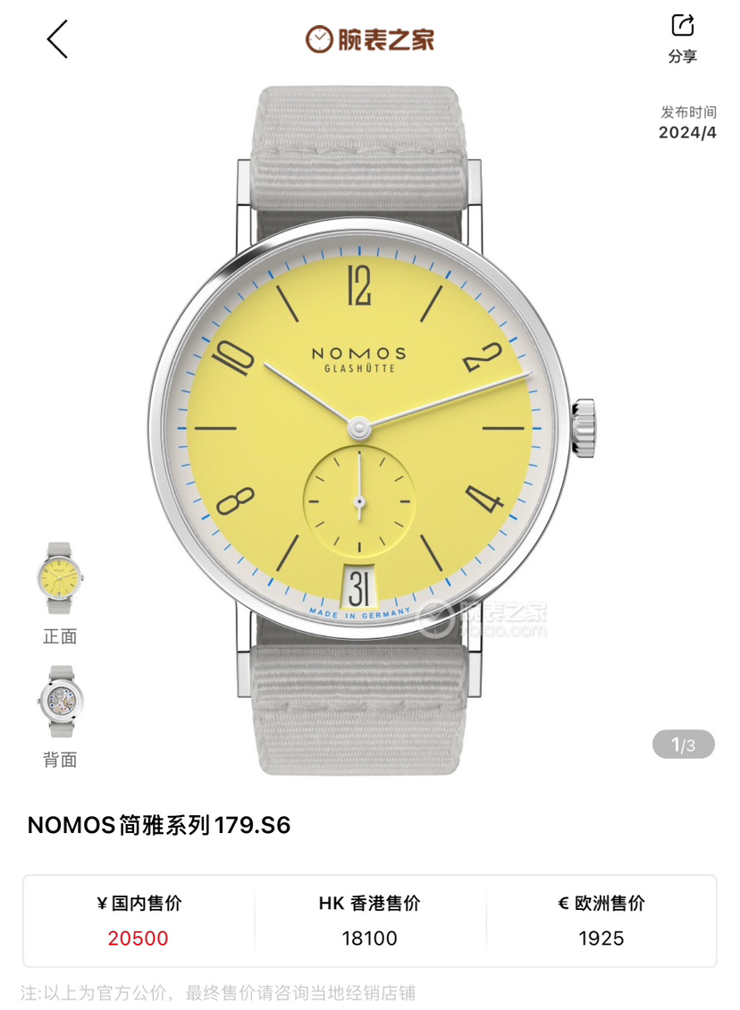 未使用NOMOS 简雅系列 颜色游戏限量款175枚