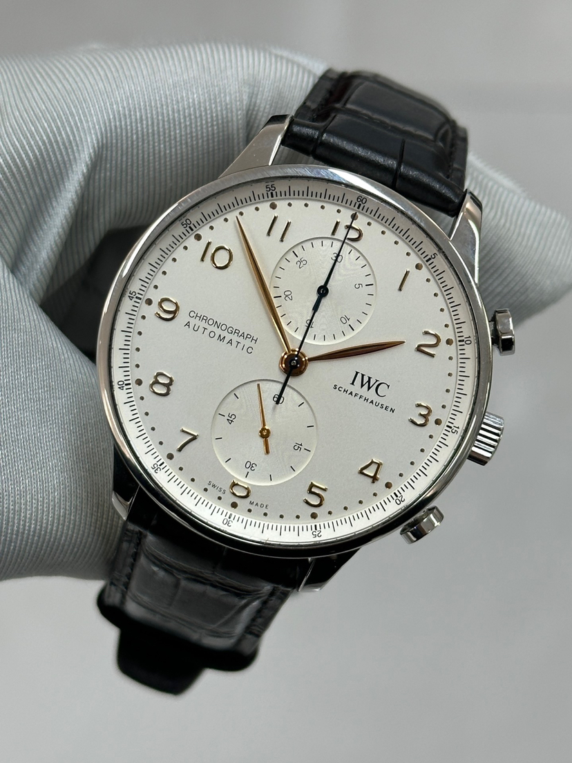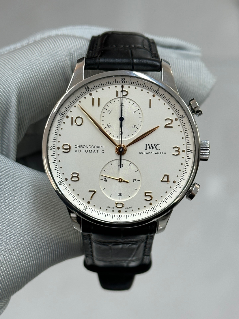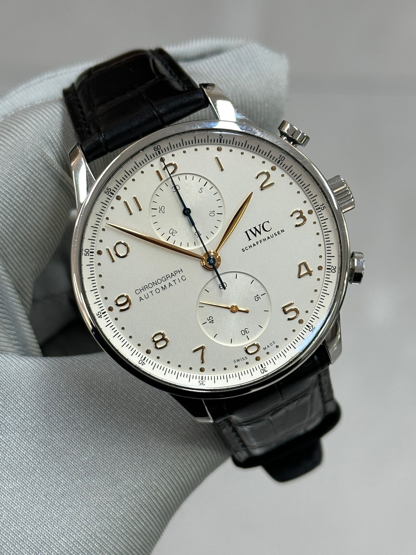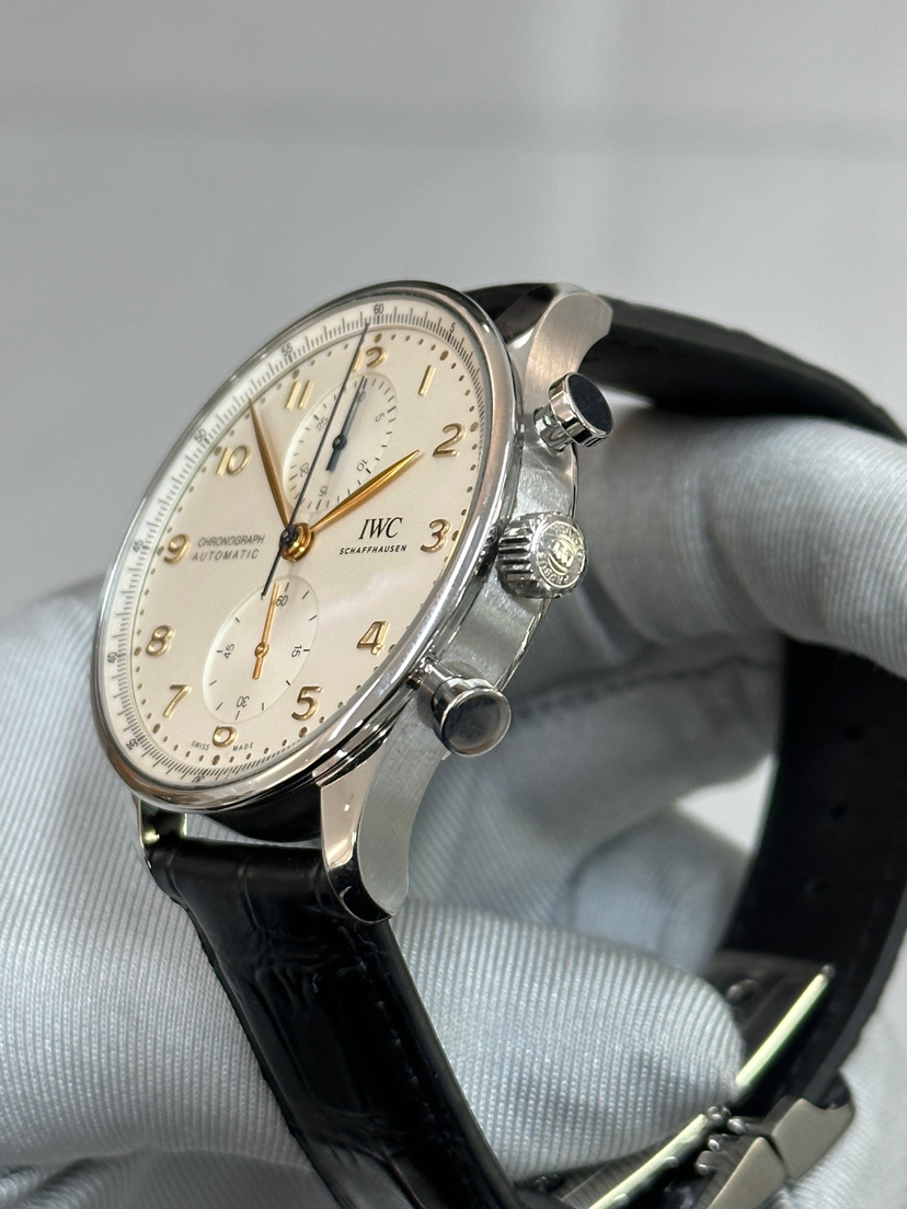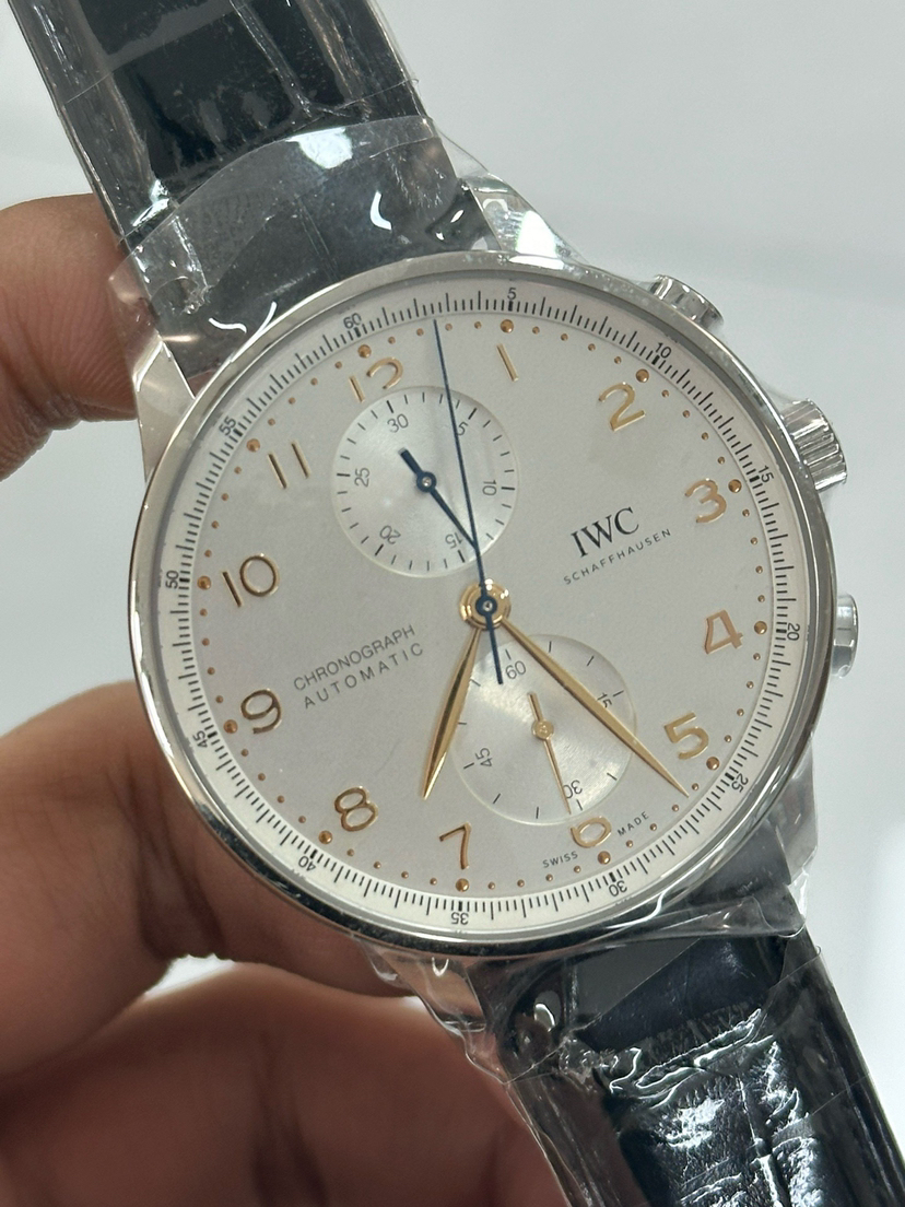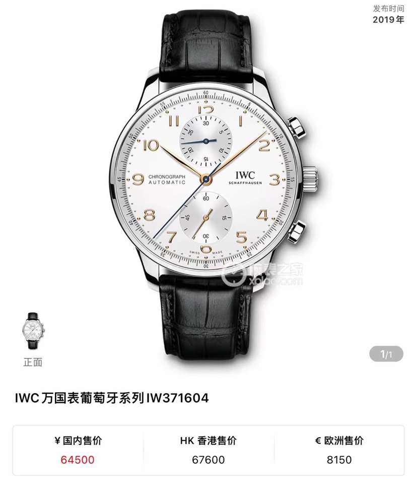万国葡萄牙系列IW371604男士自动机械腕表 热门款白盘金针 动力储备46小时 新款背透机芯 表径41mm 金色指针 采用精钢材质打造 已延保八年 公价64500