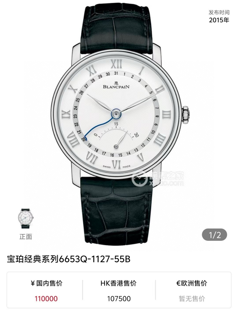 宝珀经典Villeret6653Q-1127-55B机械男性