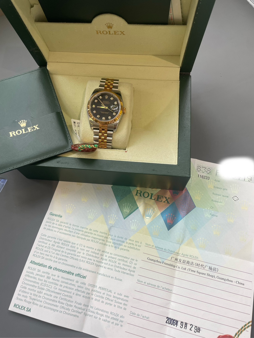 劳力士116233黑石 06年出生纸 全套全长库存成色