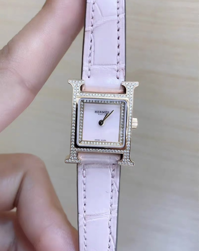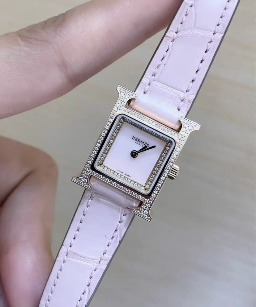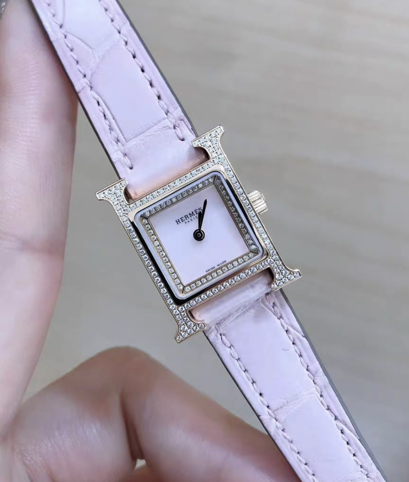 爱马仕Heure H系列18k玫瑰金原镶钻石英女表W057240WW00 表径:17*17mm 极品单表 专柜价 151200 现货2xxxx