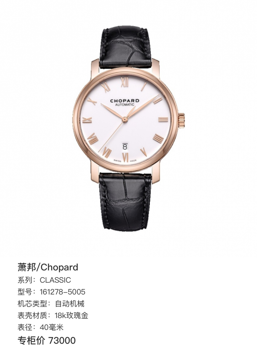 萧邦/Chopard CLASSIC 161278-5005 自动机械 18k玫瑰金 40毫米 专柜价73000 单表全新未使用~