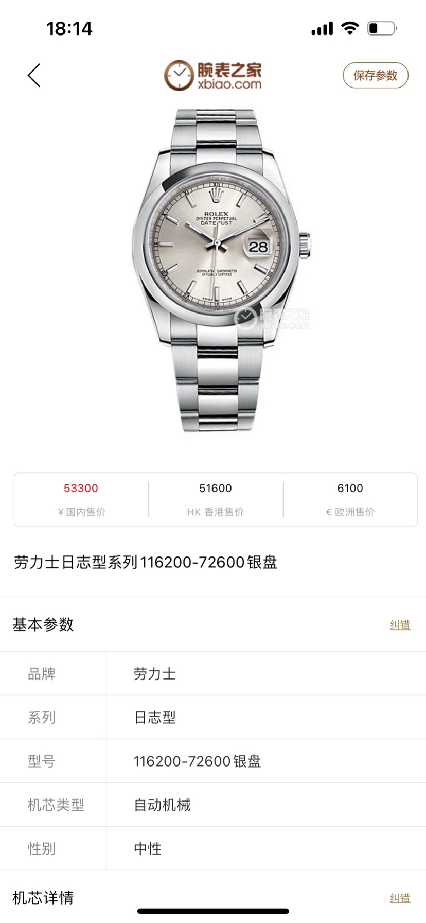 劳力士116200单表日志型系列,36表径,自动机械3135机芯,精钢材质,日期显示,公价53300,二手极品单表 现货好价
