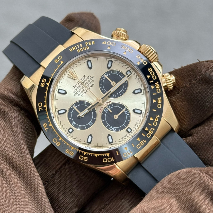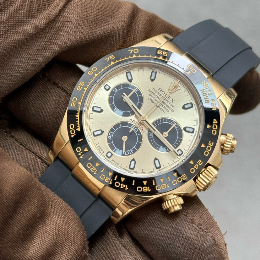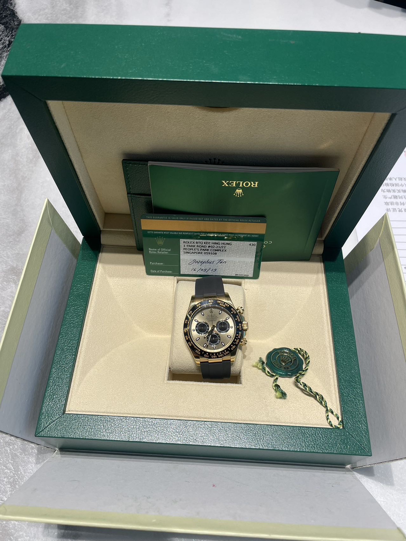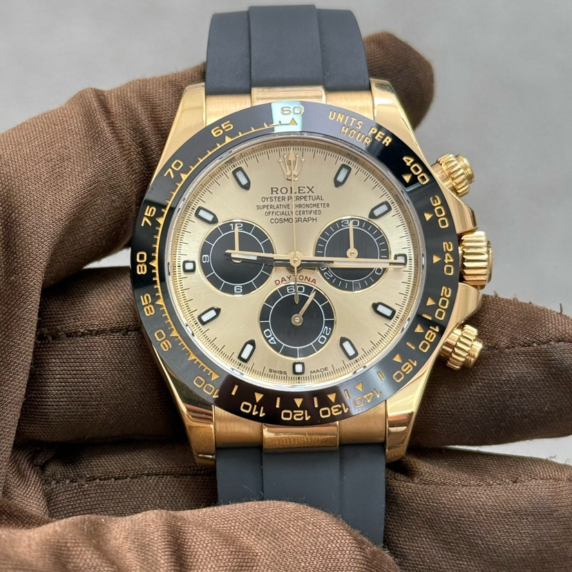 19年全套 劳力士迪通拿系列+116518余文乐+通体18k黄金++40mm表径+金色表盘+大三针+三冠三眼带计时+黑色陶瓷表圈+夜光指针夜光刻度+原装劳力士胶带+18k黄金折叠扣+公价234300+现货好价~