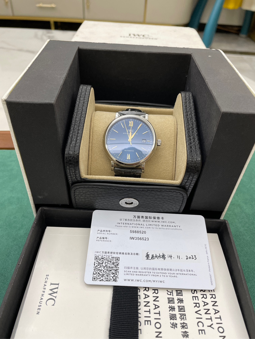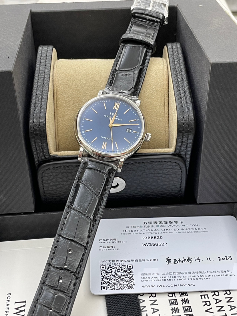 99新 万国/IWC 柏涛菲诺系列 IW356523金针蓝盘[庆祝]美爆了!自动上链 精钢 40.0表盘,官方保修8年,专柜价40500,23年全套现货好价!