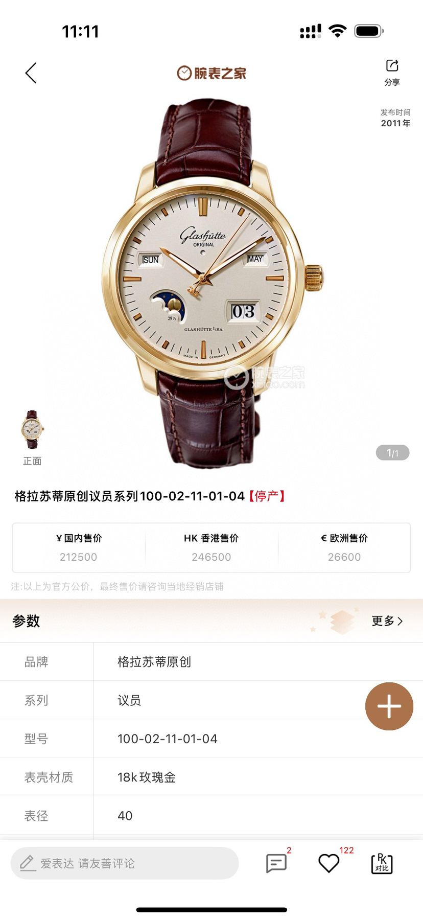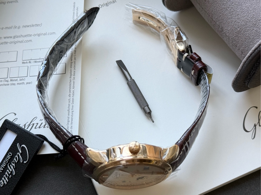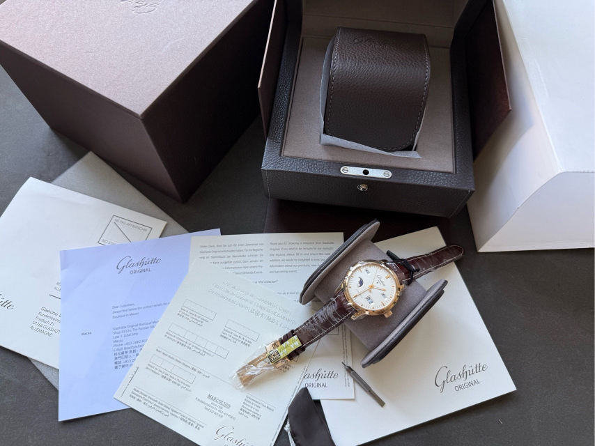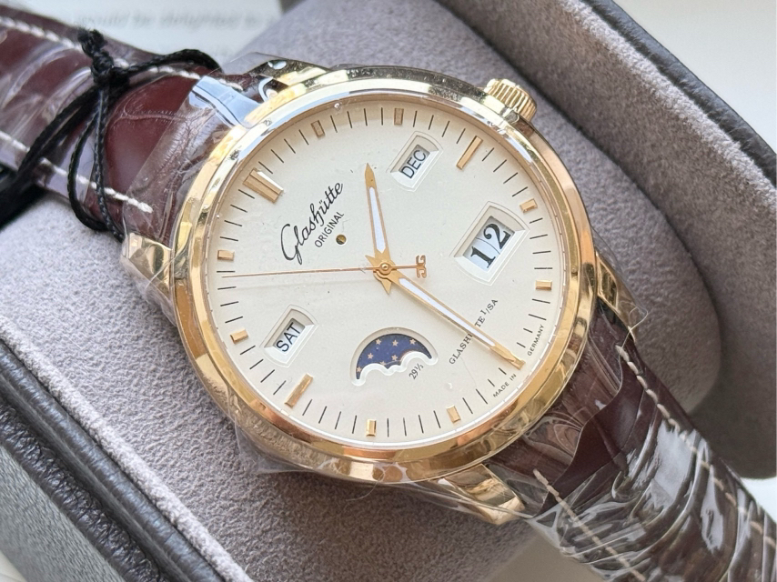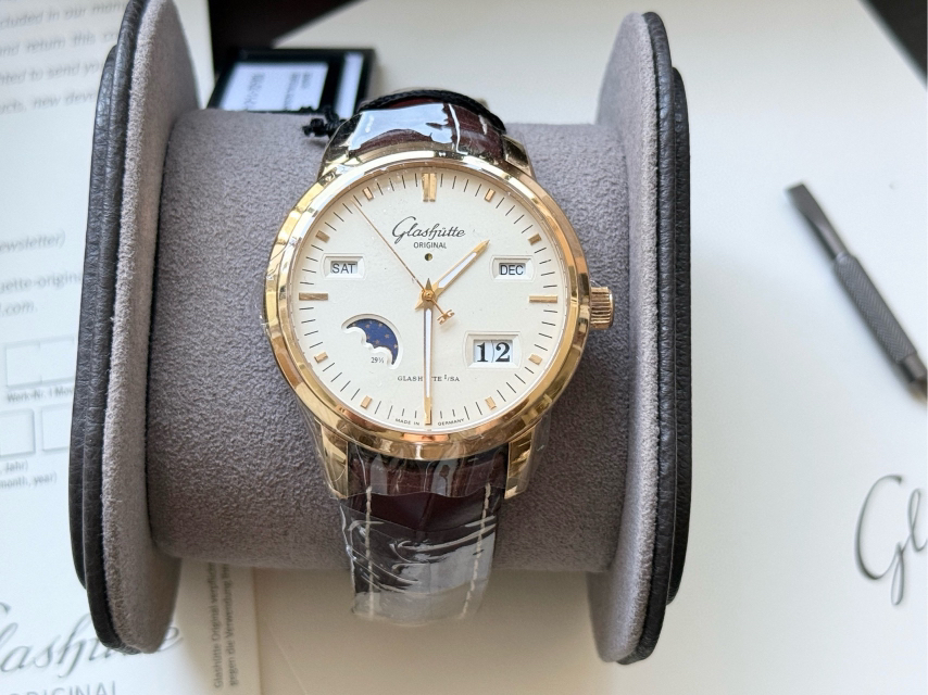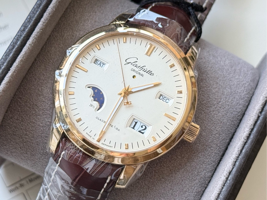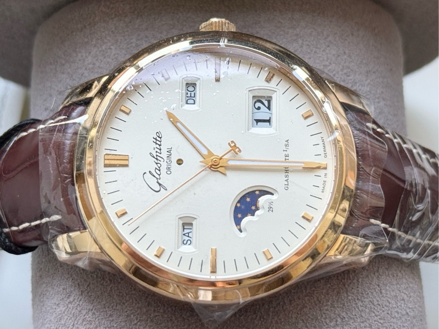 格拉苏蒂原创 议员系列100-02-11-01-04 男士自动机械表,万年历月相,玫瑰金材质,表径40mm,未正式使用品,轻微存放痕迹,全套空白保卡,原价212500 现超级好价~