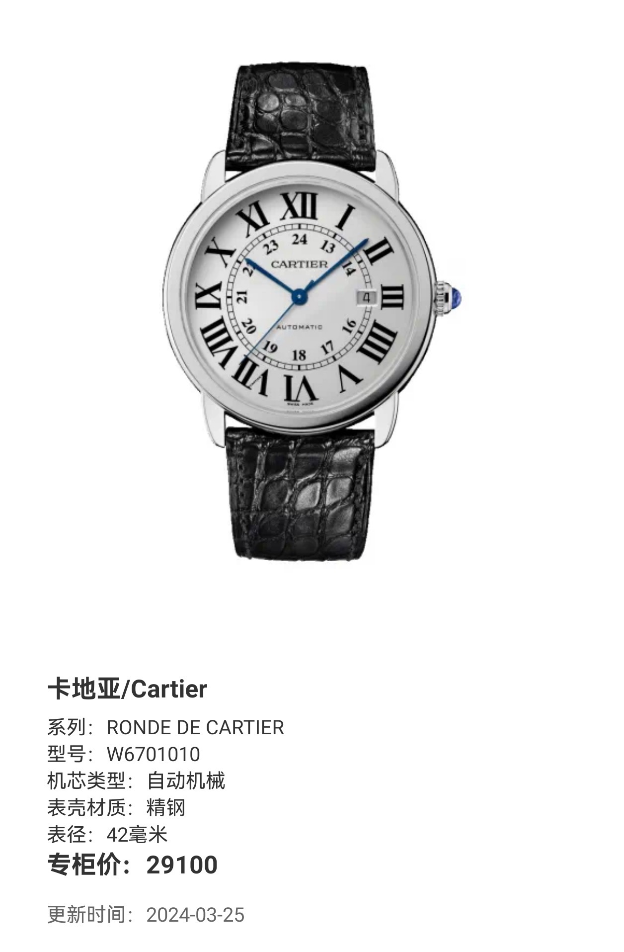 卡地亚/Cartier RONDE DE CARTIER W6701010 自动机械 精钢 42毫米 专柜价29100 二手极品单表