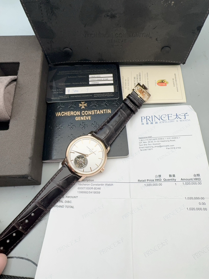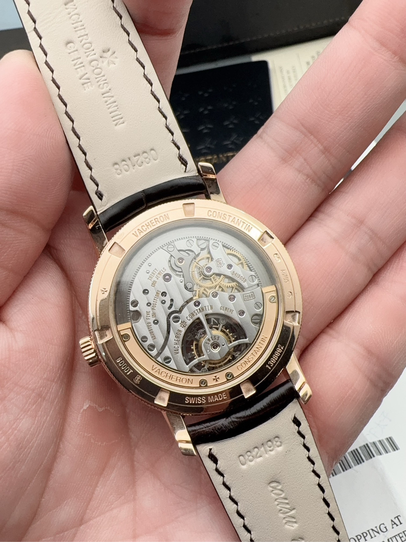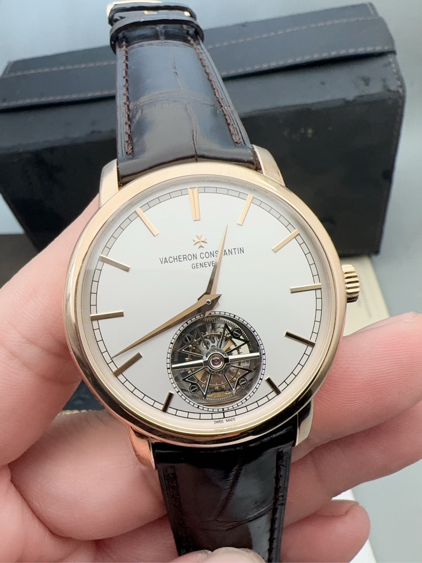 19年全套带票据.票价102万.附件如图.状态极品巅峰.自动机械 41mm表盘 18k玫瑰金材质 陀飞轮功能 公价109万,超级折扣好价出~