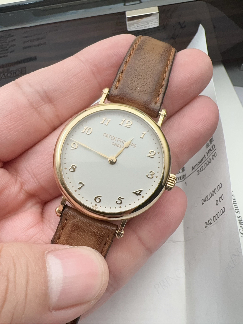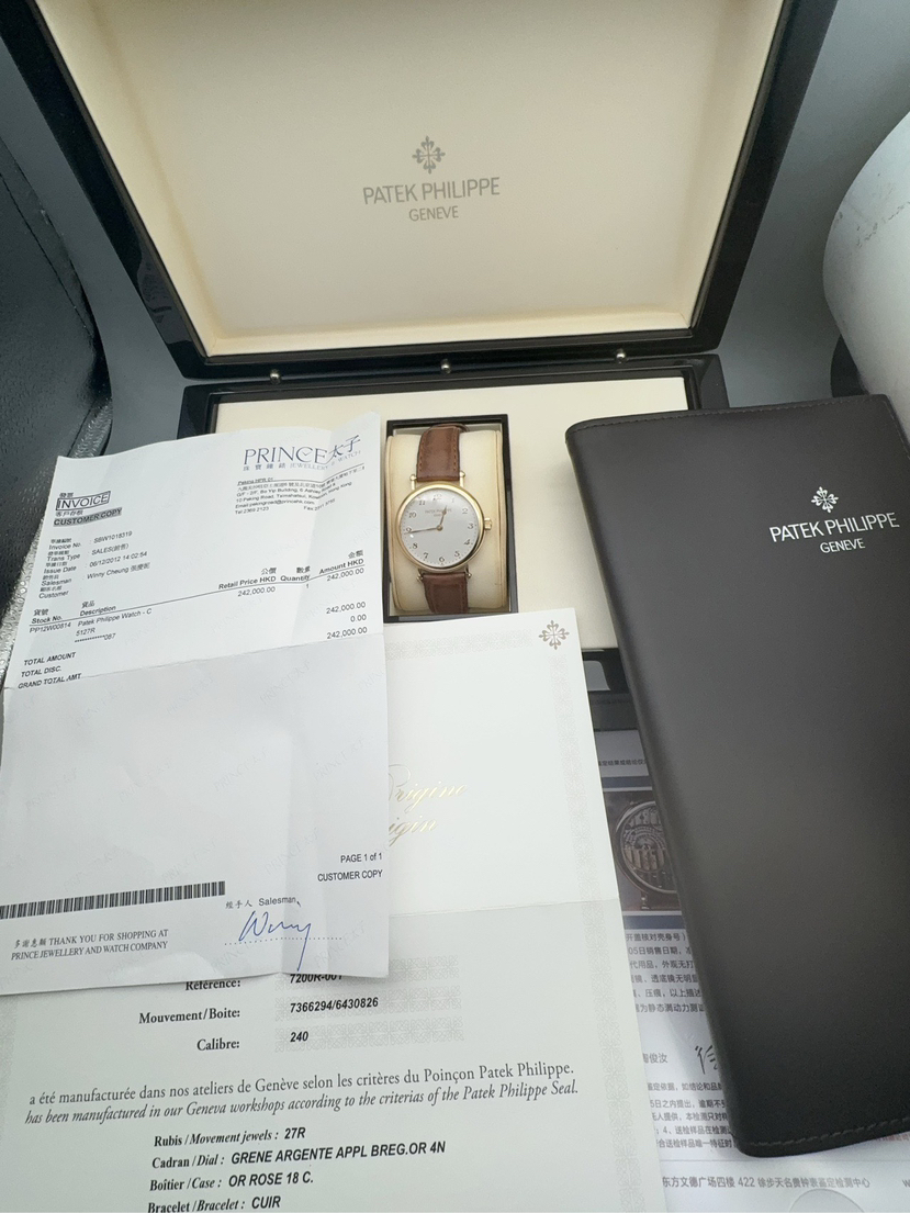 20年12月全套带票据.完美好品.带徐步天证书.自动机械 18k玫瑰金材质 34.6毫米表径 经典pp240珍珠坨机芯 珍珠陀专柜价295400 好价出