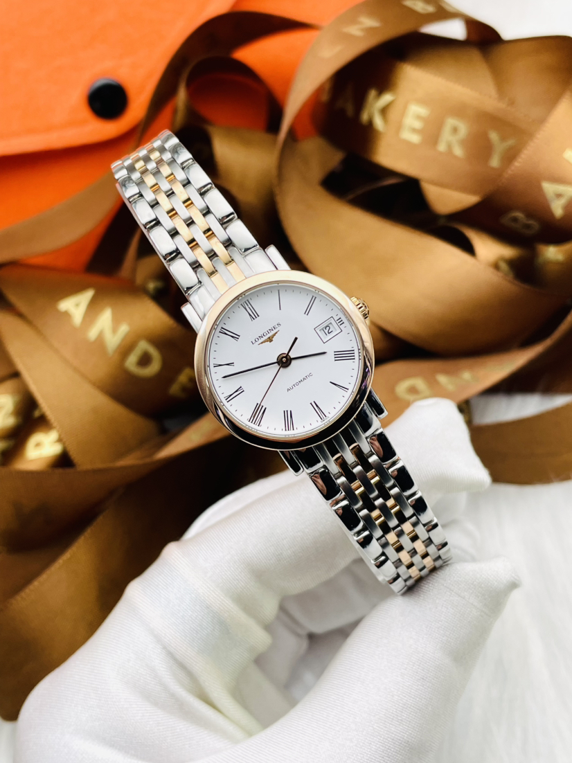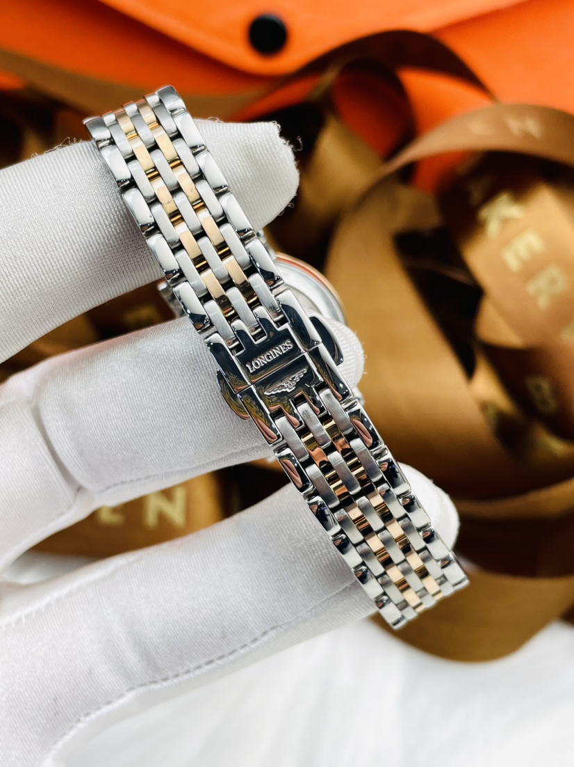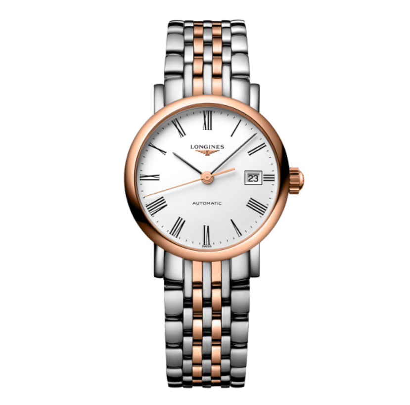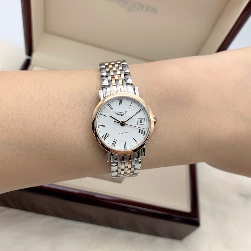 浪琴博雅系列18K玫瑰金精钢自动机械女表