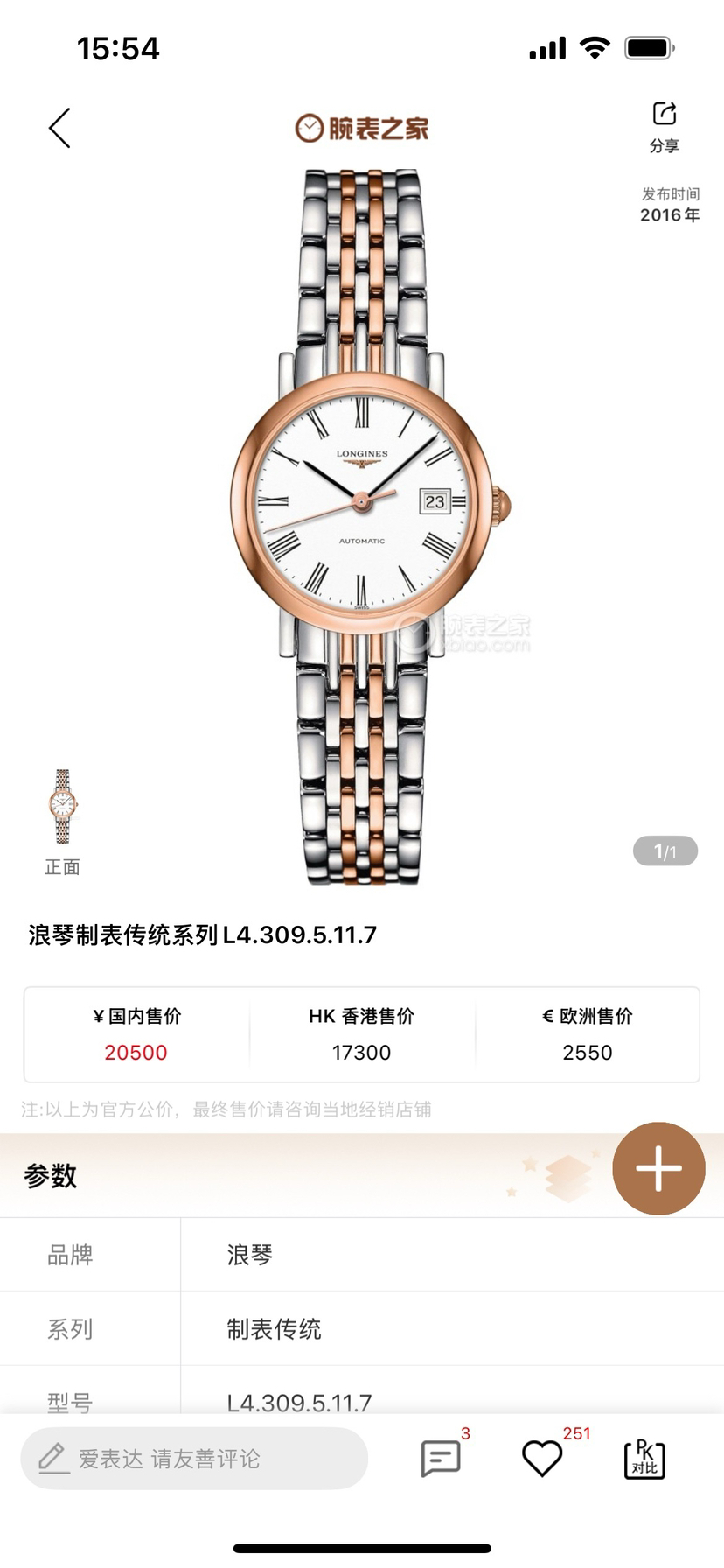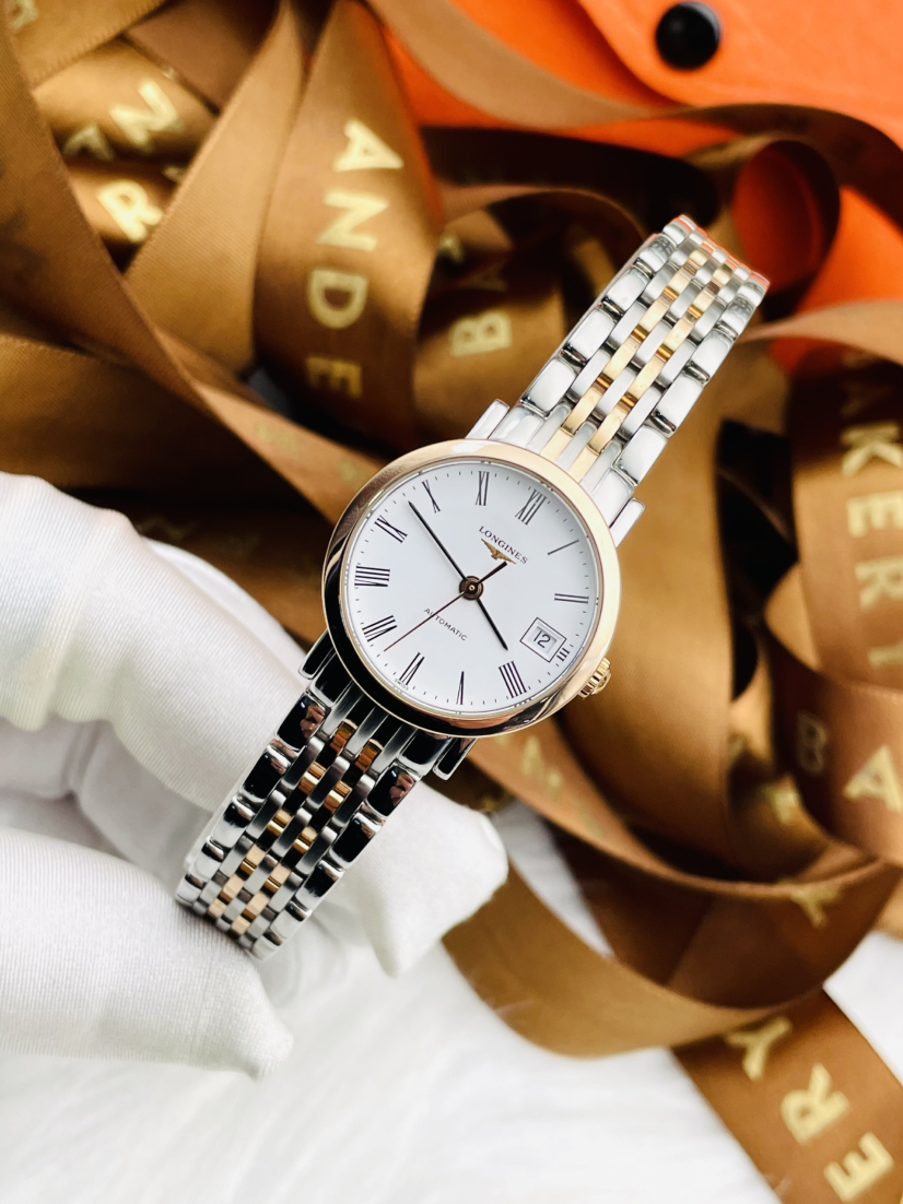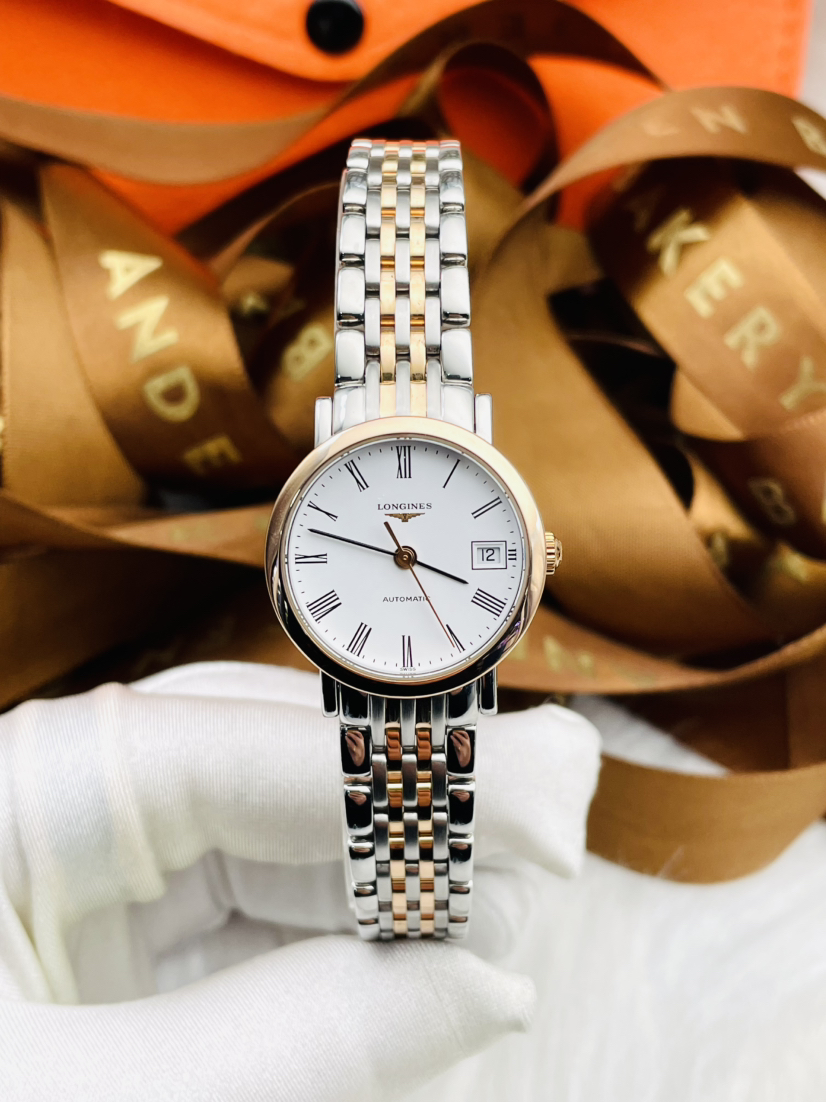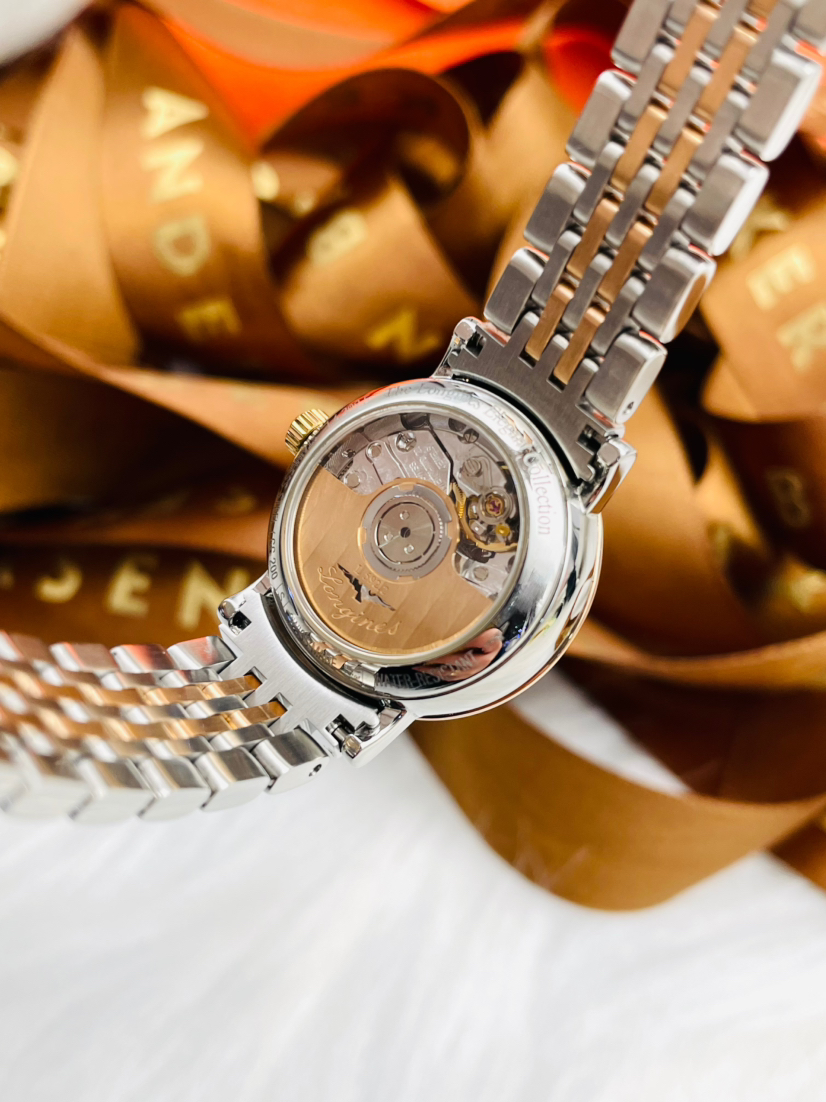浪琴博雅系列18K玫瑰金精钢自动机械女表