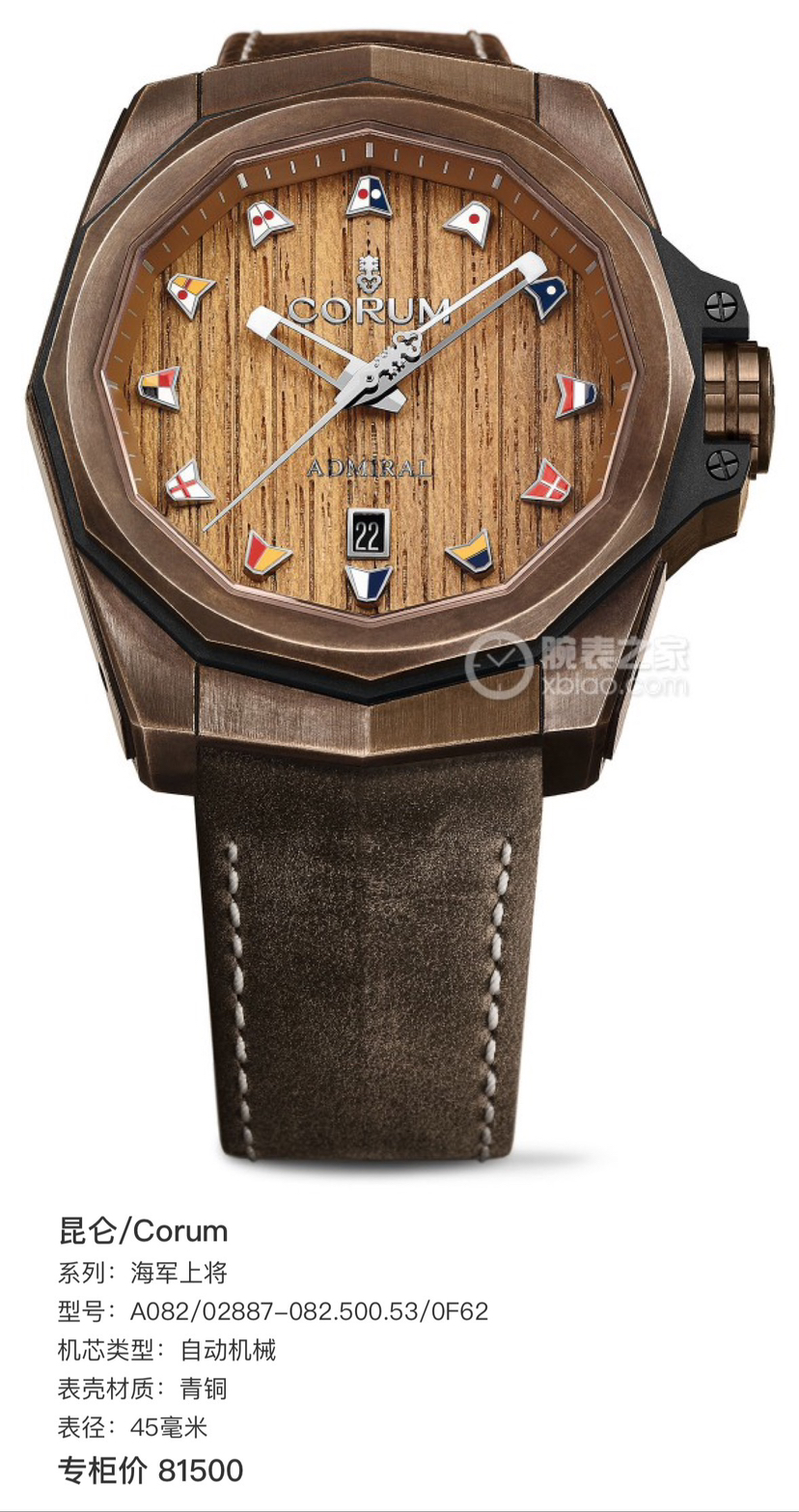 昆仑/Corum 海军上将 A082/02887-082.500.53/0F62 自动机械 青铜 45毫米 专柜价81500 极品现货,好价出!