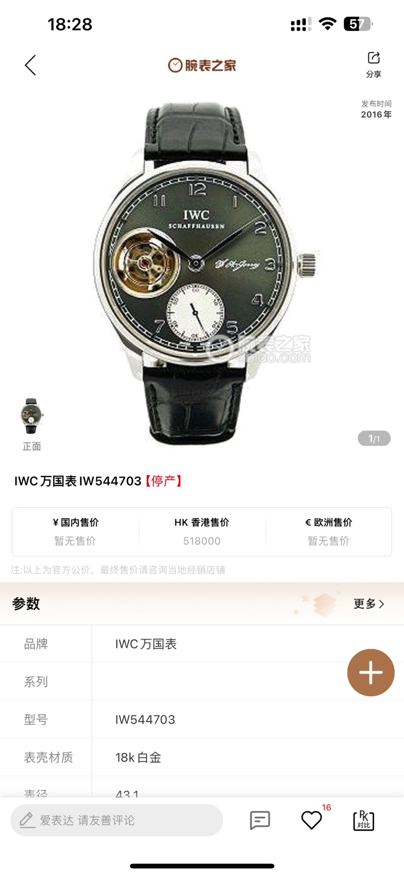 葡萄牙系列 陀飞轮 43.1表径 白金材质 现货好价