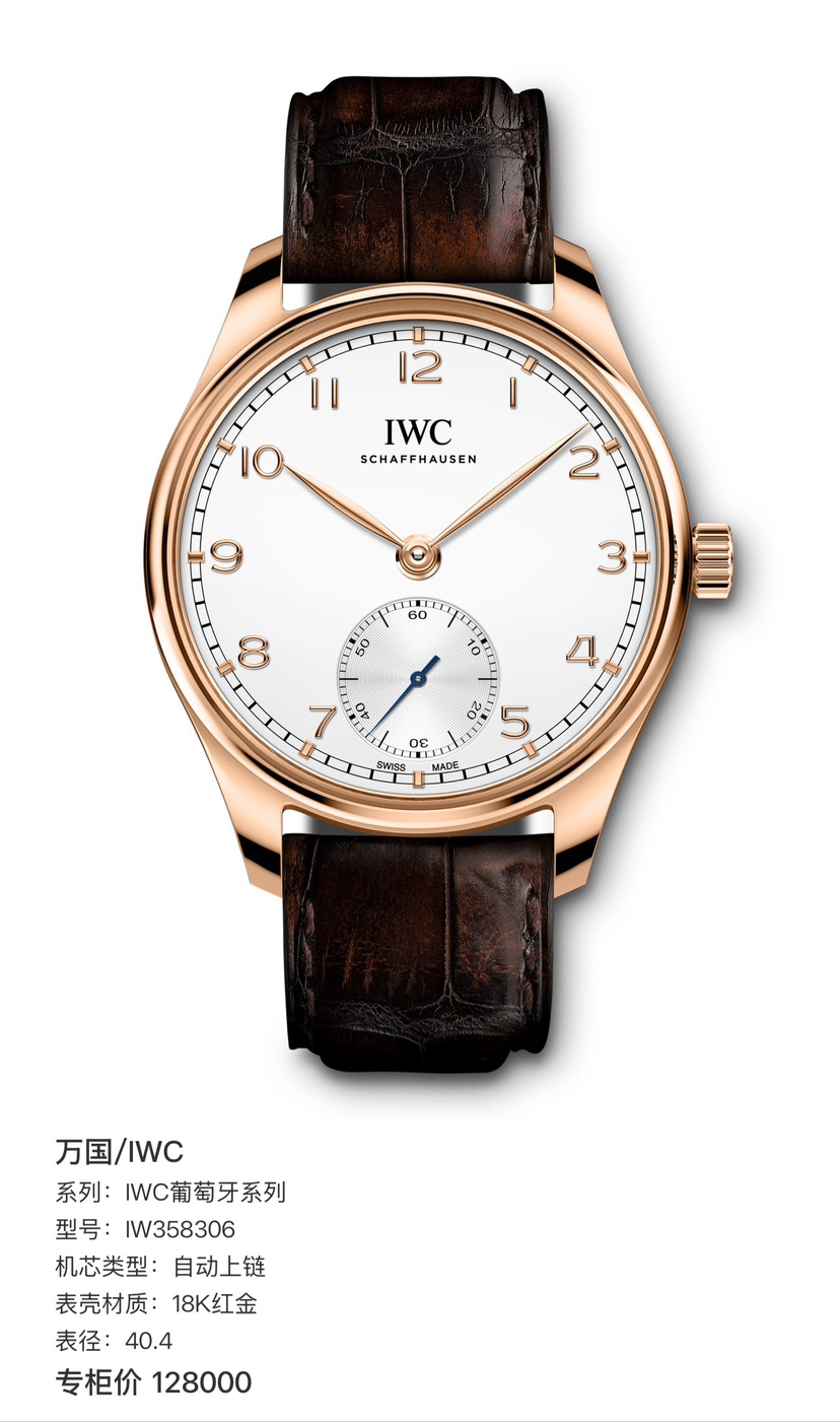 24年全套 万国/IWC IWC葡萄牙系列 IW358306 自动上链 18K红金 40.4表径 专柜价128000现货好价🉐~