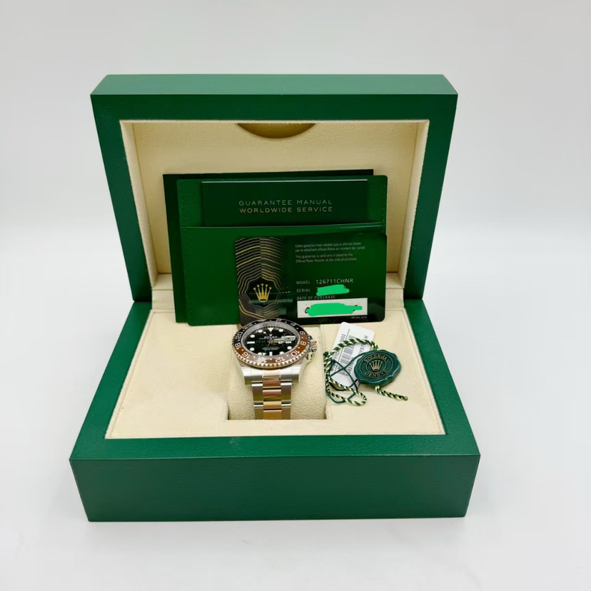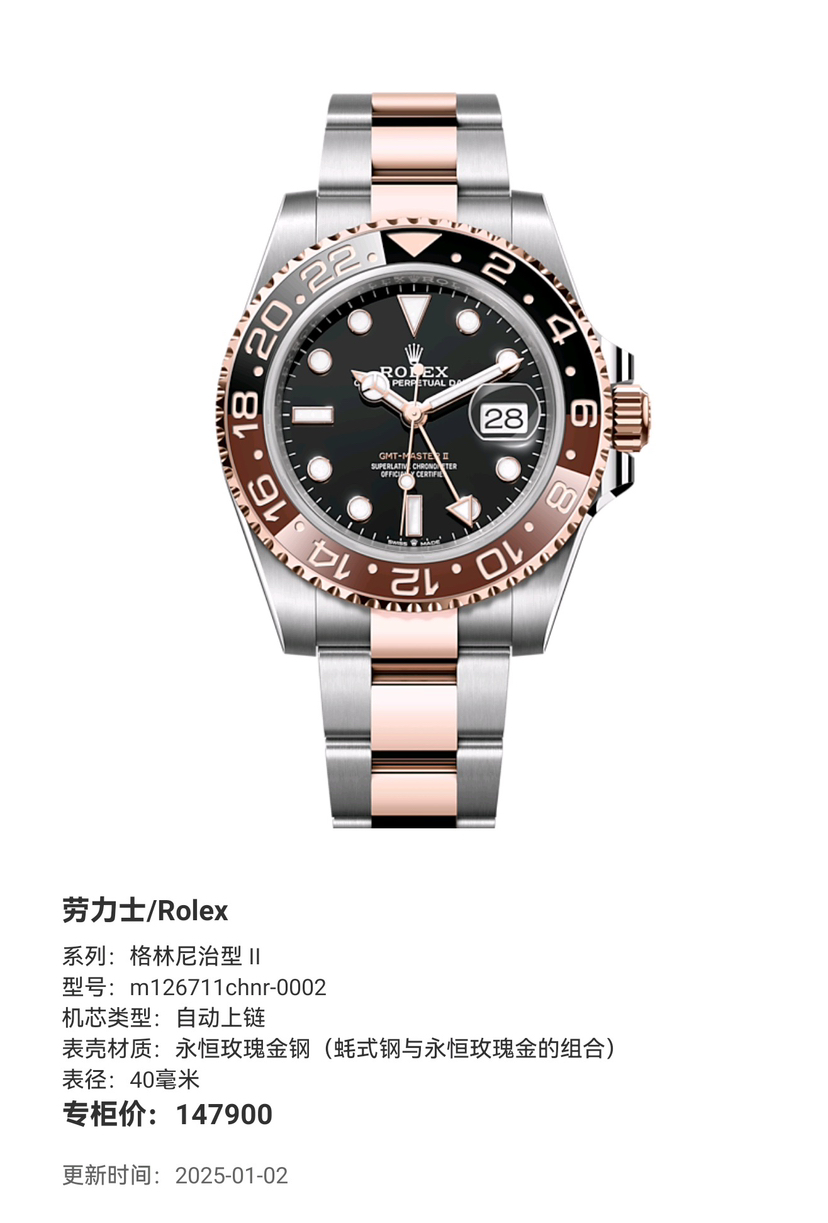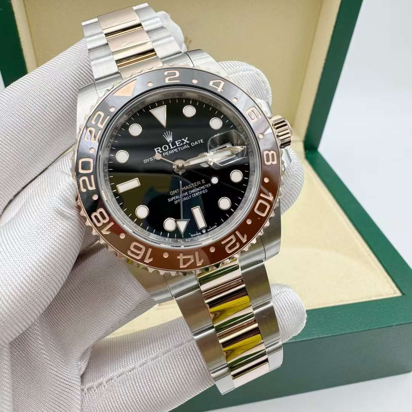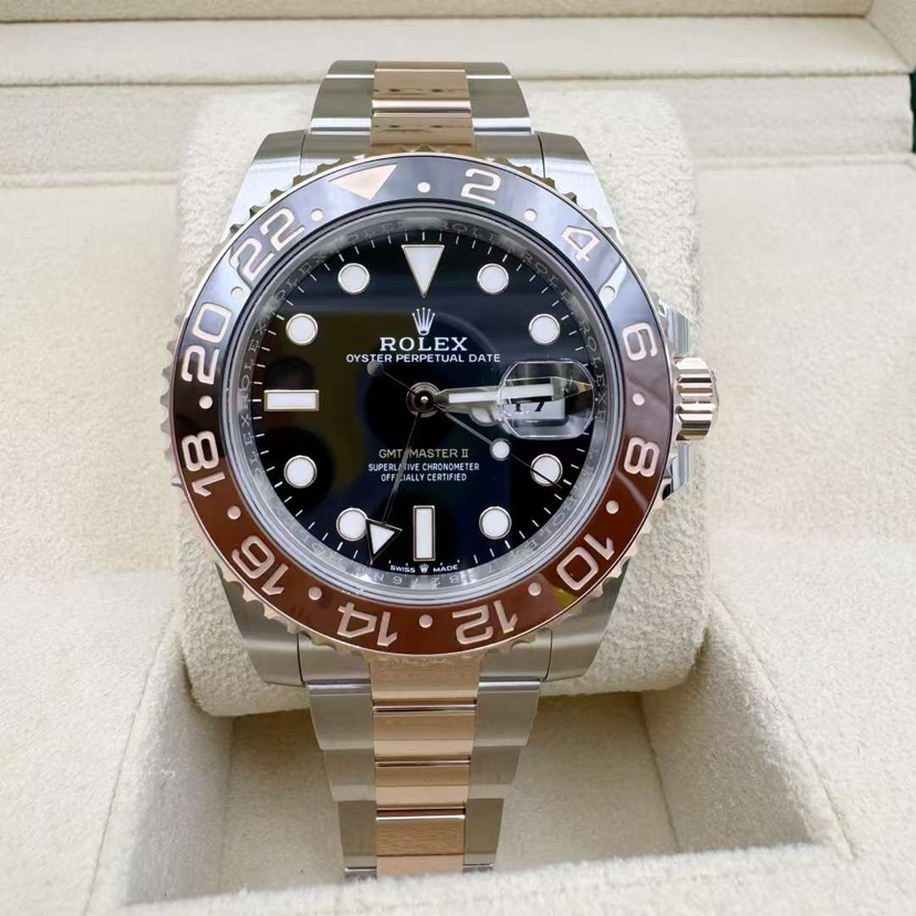 劳力士126711-0002格林尼治型系列自动机械腕表 “沙士圈” 40表径18k玫瑰金间金精钢材质 配棕黑双色陶瓷圈 双时区功能 国行全新25年3月卡全套附件 现好价带走🉐️~