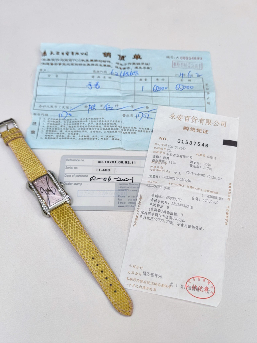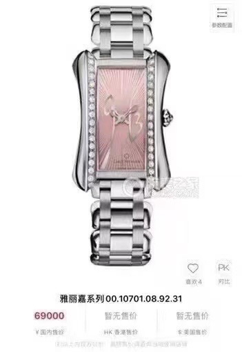 宝齐莱粉盘00.10701.08.92.11雅丽嘉系列 石英机芯 表径20x30女士腕表 精钢镶钻 少女心粉色盘面2021年6月永安百货购入大全套双皮带 可替换 专柜65000元~