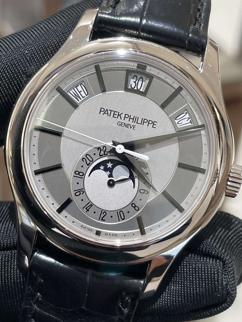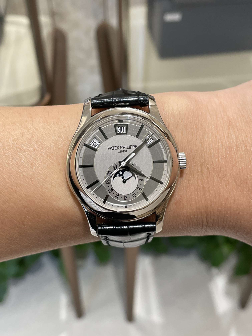 百达翡丽-复杂功能时计,5205G-001,全套,极品完美成色,40毫米白金年历月相表,原价361300,现货[嘿哈][嘿哈][嘿哈][嘿哈]~
