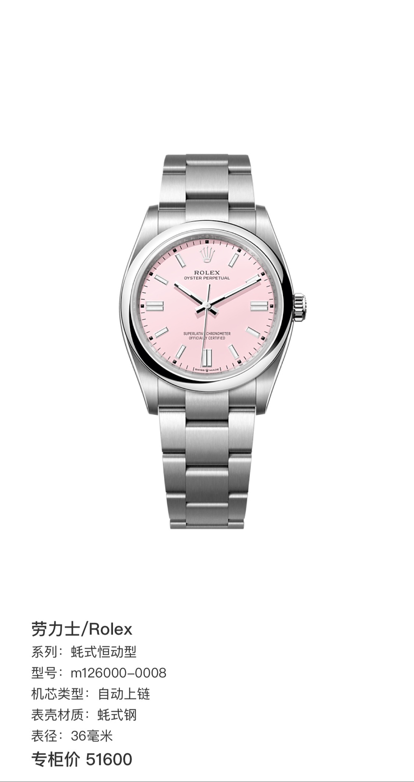 劳力士/Rolex 蚝式恒动型 m126000-0008 自动上链 蚝式钢 36毫米 专柜价51600