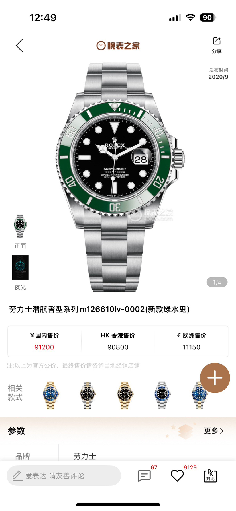 劳力士潜航者型 星巴克 绿水鬼 M126610LV-0002自动机械男性