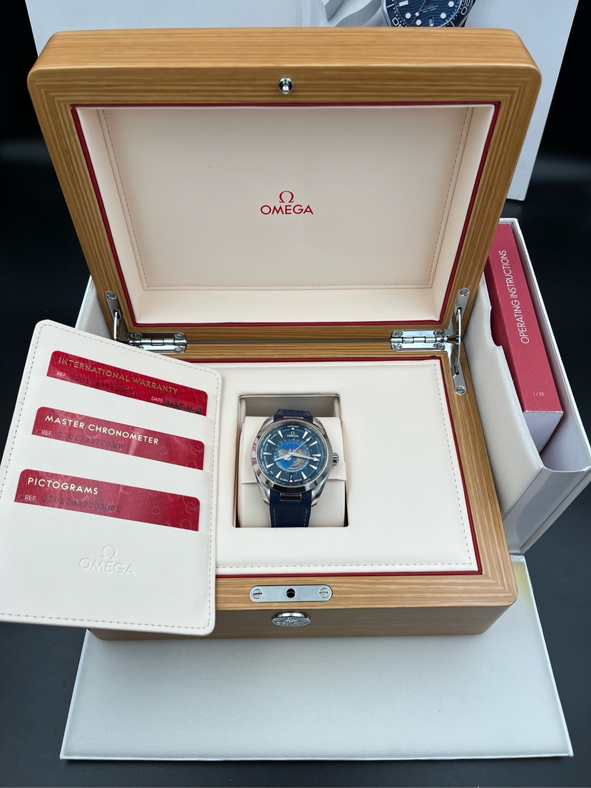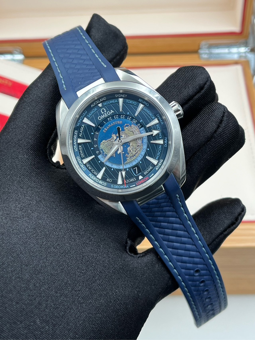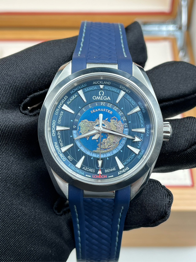 欧米茄/Omega 海马150系列 220.12.43.22.03.001 25年全套 世界时蓝胶 自动上链 精钢 43 专柜价78600~