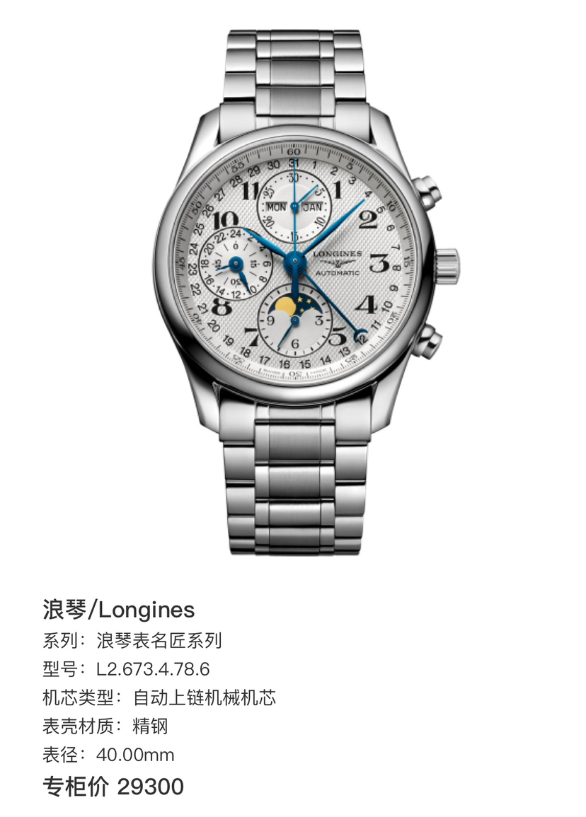 浪琴/Longines 浪琴表名匠系列 L2.673.4.78.6 24年柜台展示品 自动上链机械机芯 精钢 40.00mm 专柜价29300~