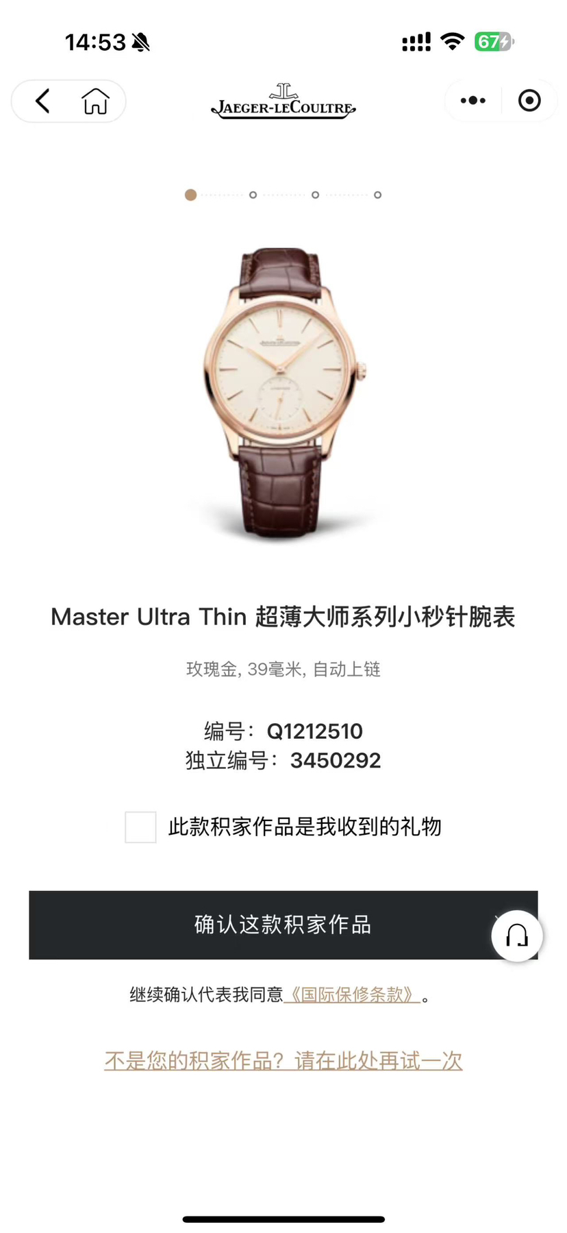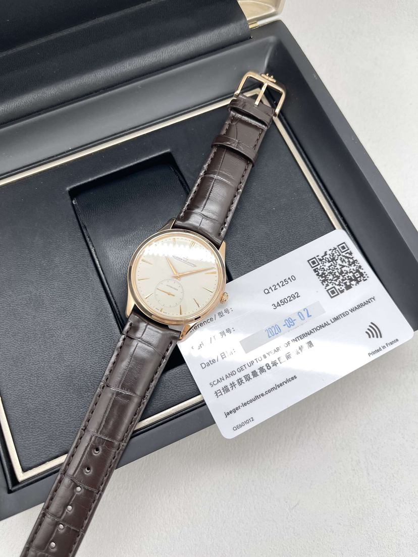 积家超薄大师系列1212510 玫瑰金材质 自动机械 39mm 超薄机身 小秒针 20年全套 公价16w 现货好价~