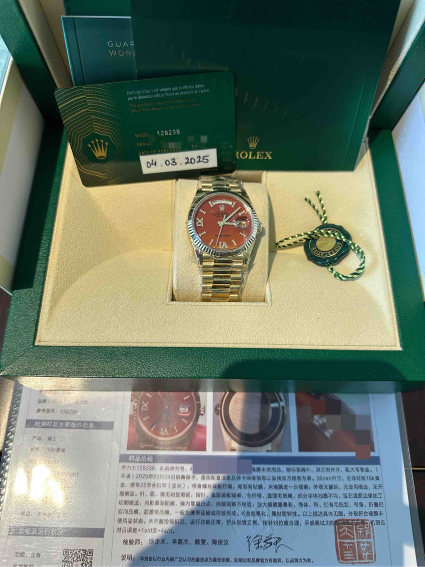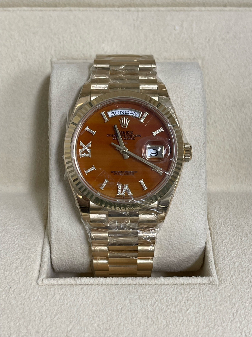 25年3月全新劳力士128238-0088红玉髓爱马仕橙🍊 最火特殊盘36表径dd 钻石镶嵌刻度 绿牌 全新未使用 现货好价