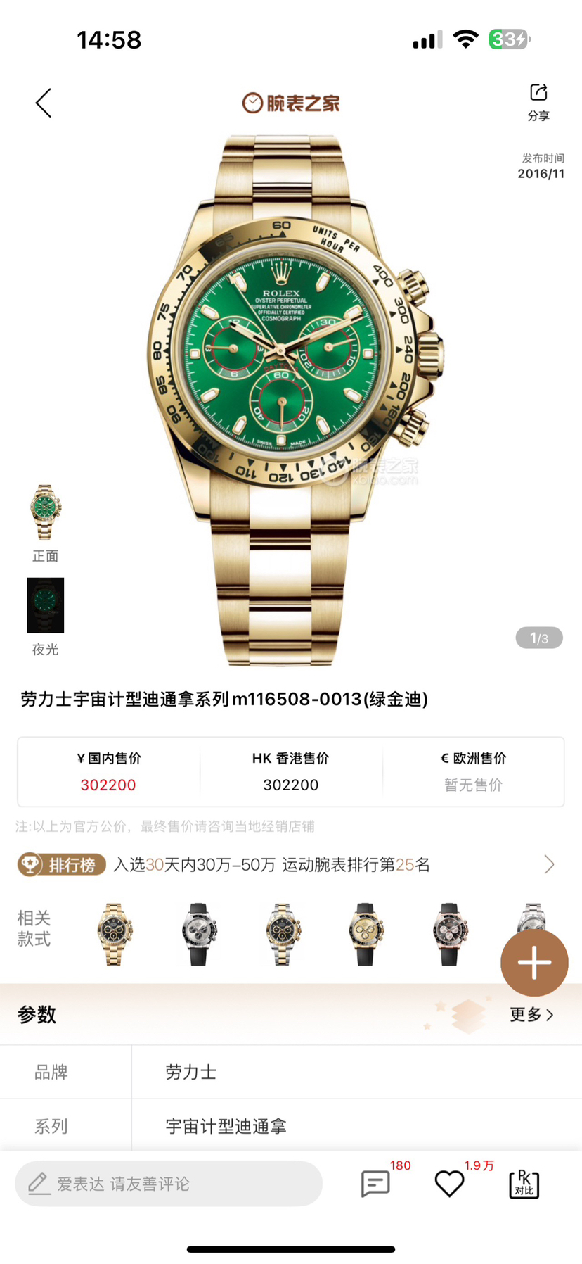 劳力士宇宙计型迪通拿 绿金迪 M116508-0013自动机械男性